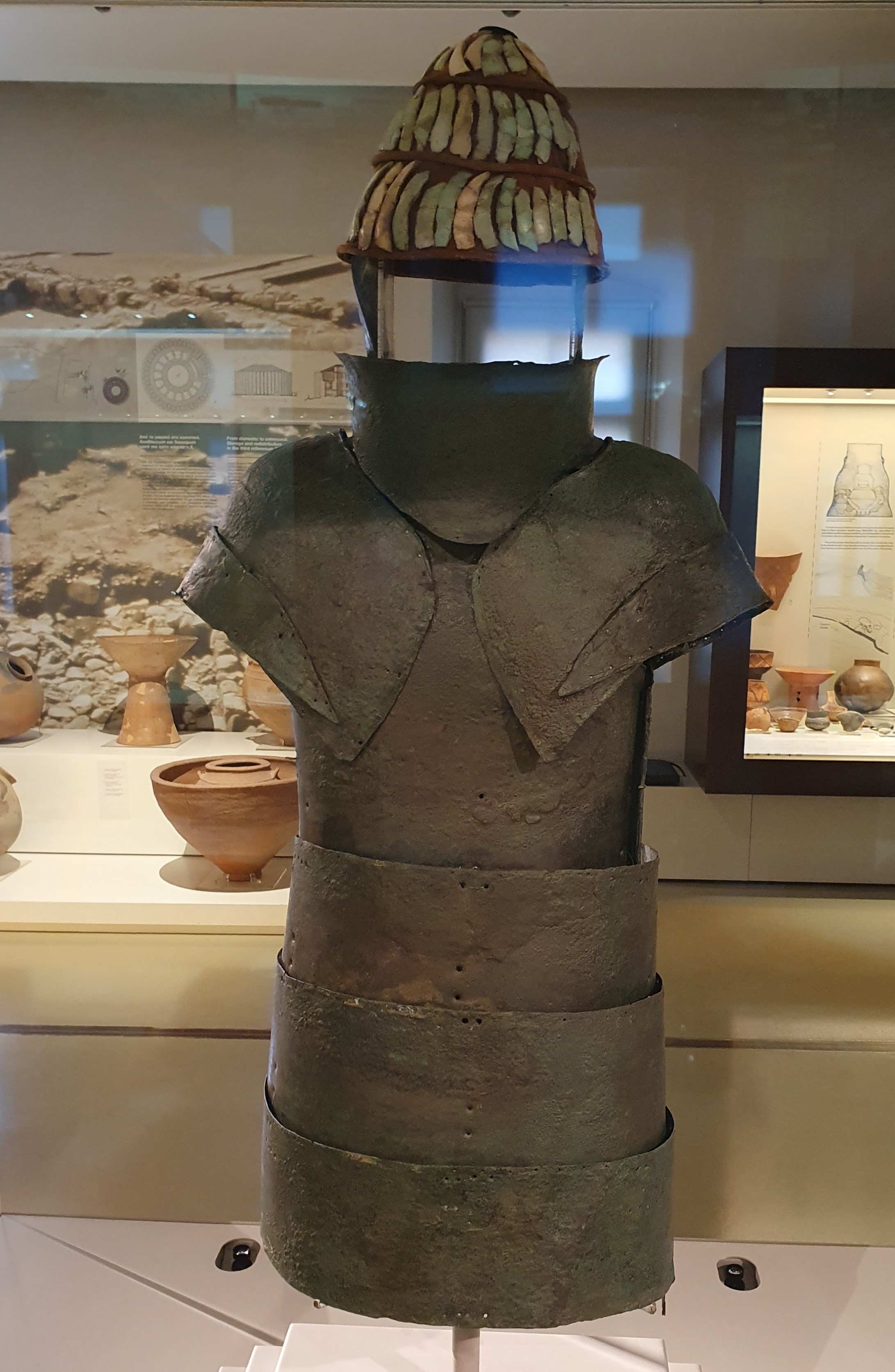 We began the day with a stroll through Nafplio, a lovely seaside town, where I could easily imagine spending a couple of weeks in the summer. There’s even a seaside rock swimming pool that reminded me of the Sydney area. Nafplio was the first capital city of the modern Greek state, 1823-1834. It would be very different today had Athens not taken over as capital. We ended our walk at the fortress that overlooks Nafplio, and stopped in at the museum. As in other places, the Nafplio museum holds treasures from ancient sites. One of the best known is a full suit of ancient Greek armor including a helmet made of boar’s teeth.