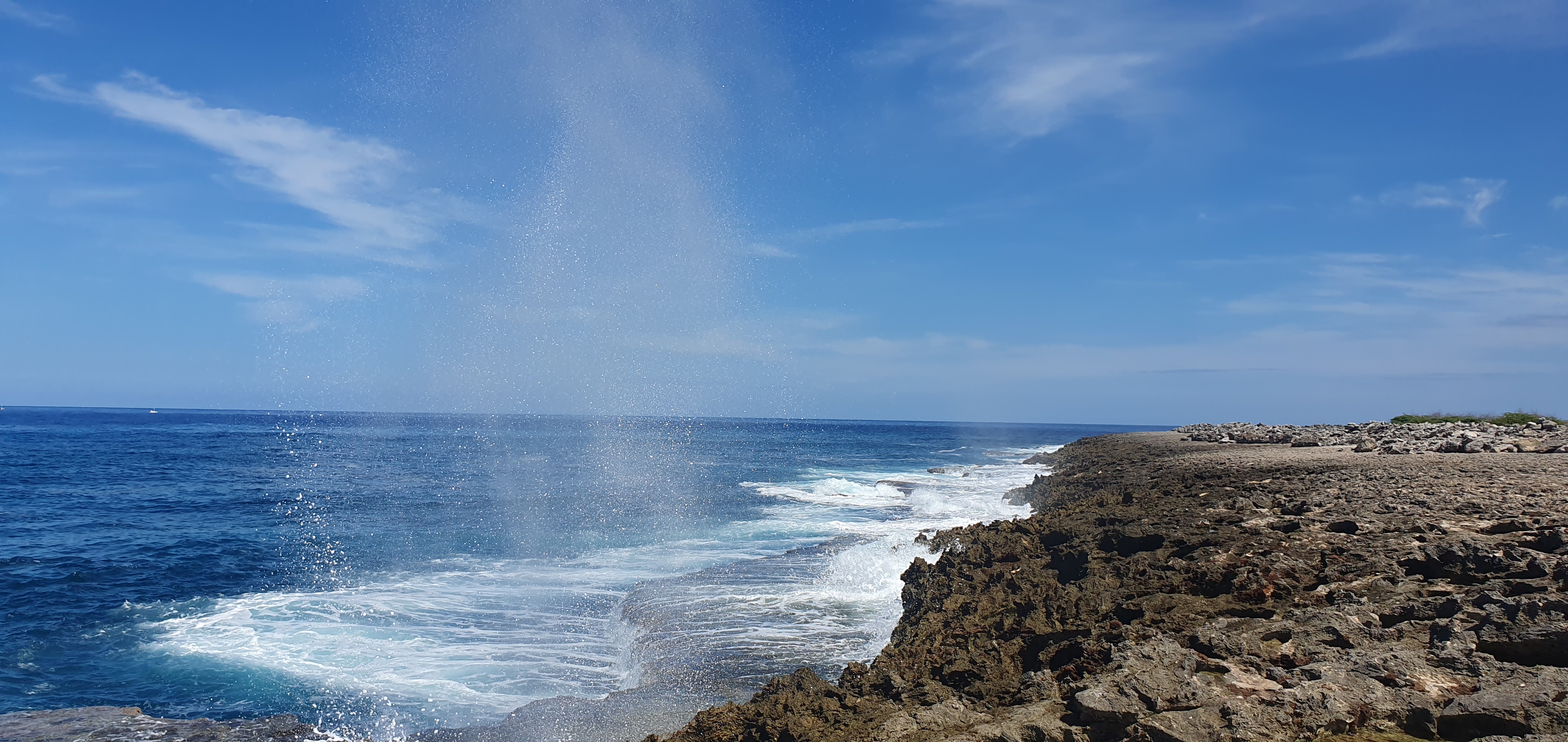 Our first goal was to visit Westpunt, the far west end of Curacao. We drove as far as we could, and ended up at Watamula Hole, a series of blowholes on a rocky shore. Walking was difficult on the broken rock and fossilized coral. Getting to the parking area was a triumph of navigation, owed in part to my getting a local SIM card. I ended up not needing to make local calls, but definitely used the data to find directions.