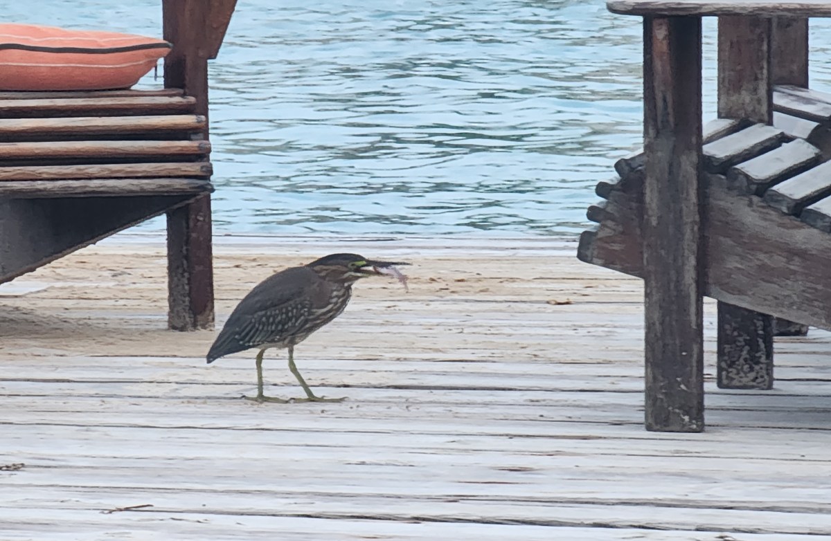 We didn’t stretch ourselves much to go birdwatching on Curacao. The resort had one of our favorite Caribbean birds, the bananaquit (sounds like a fancy drink, doesn’t it?). Bananaquits were building a nest on the rafters of one of the beach cabanas, and we saw bright troupials in several places. The troupial is a sort of tropical oriole, and the national bird of Venezuela. A variegated heron fished and ate his minnow as we watched. An osprey sat on the same bare branch most evenings, sometimes eating a fish. Terns, frigate birds, and pelicans flew overhead. On the shore, we saw Greater Yellowlegs, Ruddy Turnstones, and a few others. Though there isn’t a huge array of species on Curacao, there are plenty of interesting birds to see.