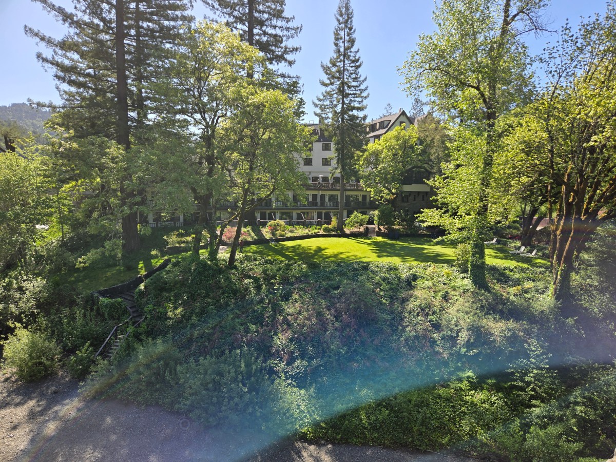 The estate Julia Morgan designed is just across the river from the hotel, and the two structures are similar in overall design.
