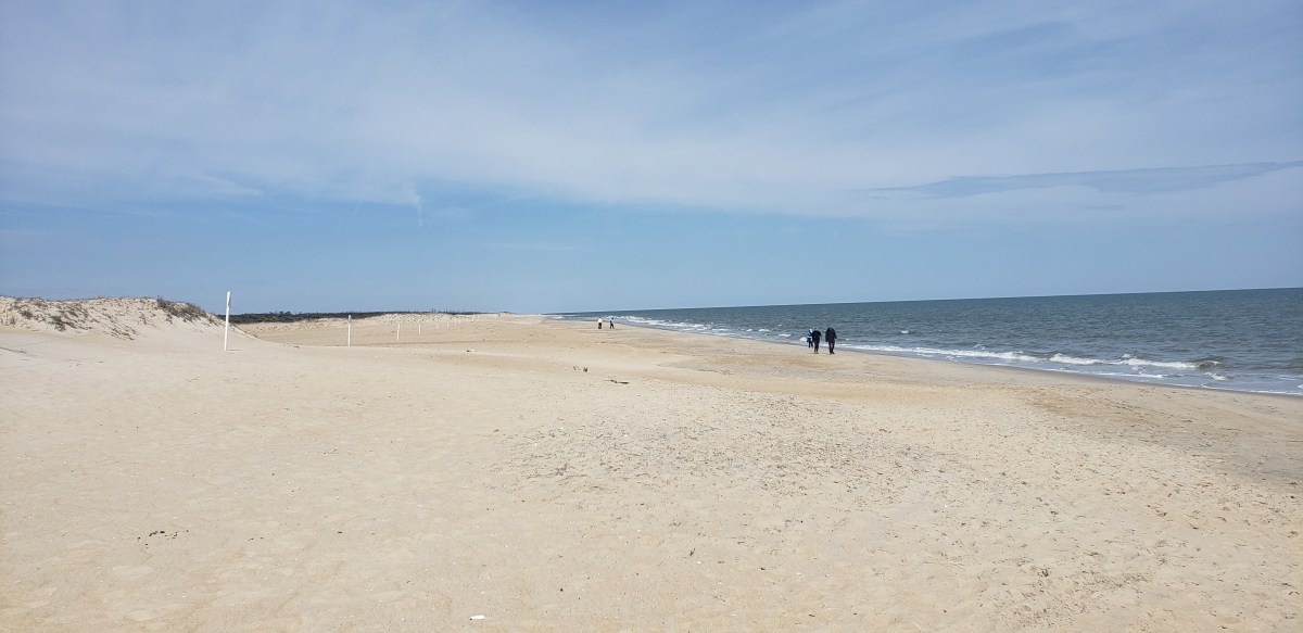 We continued on to Assateague Beach, a long stretch of sand. Getting out of the car, we noticed the air was much colder than in town, and the wind was much stronger. We added all our layers and set off for a walk. There were other walkers, picnickers, a couple using a metal detector, joggers, and people fishing. We were passed by a couple headed down the beach with their picnic. About 200 yards past us they turned, and went straight back to their car. Somewhere between invigorating and freezing, we enjoyed the walk despite the cold. Jonathan picked up a big fish hook and swivel, and there were lots of interesting shells, but none we had to keep, and no beach glass at all.