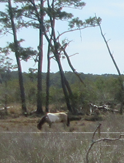 After lunch, as we drove toward Assateague Beach, we found cars parked along the roadside. We slowed, then stopped to watch the ponies grazing just across the fence. Children, parents, and grandparents took photos and picked out their favorites. The ponies have a good story, even if it is largely fictional. [They probably did not originally come from the wreck of a Spanish galleon, they are no longer wild, and anyone can purchase one.]