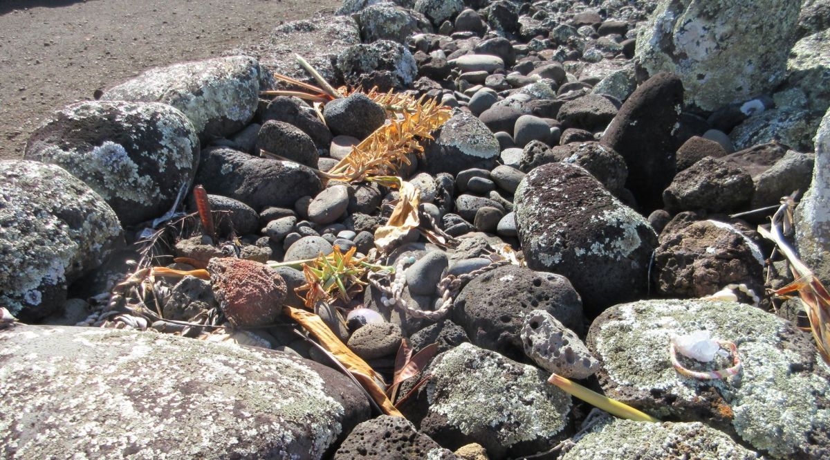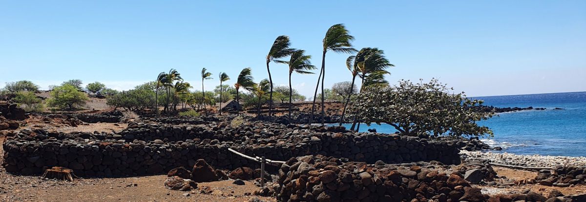 It is still possible to walk into the Mo’okini enclosure and get a sense of how imposing it would have been to participate in a ceremony there. Some visitors leave offerings of flowers, fruit, braided leaves, rocks, crystals, and shells.
