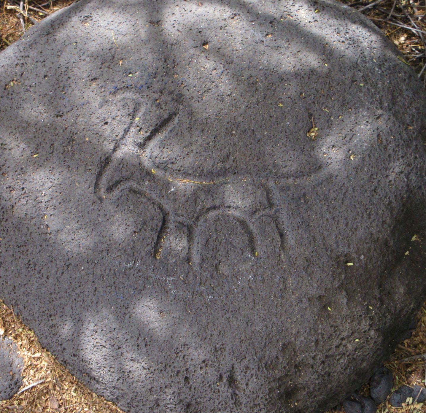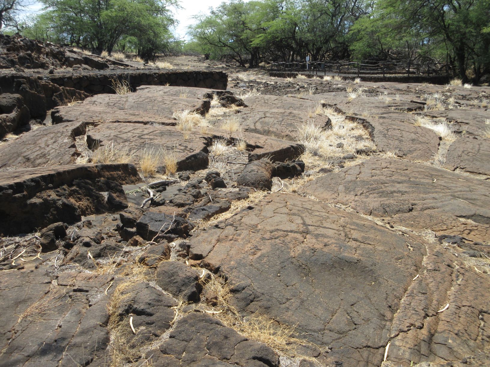 No one is sure why these images were created, and petroglyphs are found in a number of different places around the island of Hawaii and on the other islands. Whatever the purpose, they are very durable, and great food for thought on a walk. It can be hot out on the fields of lava, and there’s lots of advice to take water with you. It’s an interesting walk through the trees to the site, and the variety of shapes is intriguing. It’s impossible to tell how long ago each of these was made.