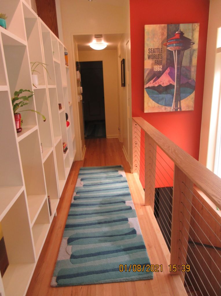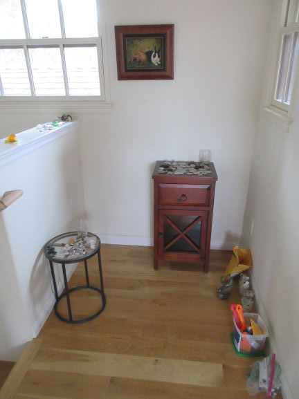 I changed the tiny desk area at the top of the stairs to be my holiday Zoom zone, and back to it’s original form.