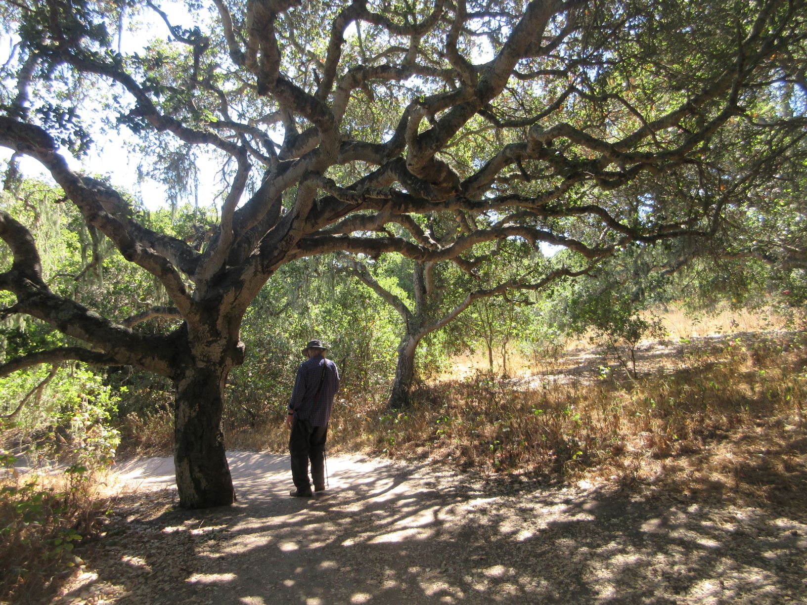 Our first visit beyond the beach started at the Ft. Ord National Monument marker and took us along trails through grassland and patches of oaks. We looked at birds and admired some of the gnarled tree trunks. We agreed that we needed to visit as early in the day as possible, as the grasslands heat up rapidly. The current high heat warning affecting most of the western US hasn’t reached us, but bright sun feels hot enough.