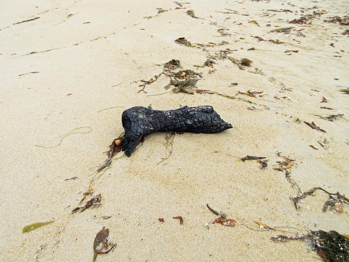 Rather than throw our beach-combing treasures and extra beach glass straight into the ocean, we took it back to the beach and built a little shrine on the low tide line. We hope the waves will wash it all back into the ocean and that other people will have a chance to find some of these interesting things once again.