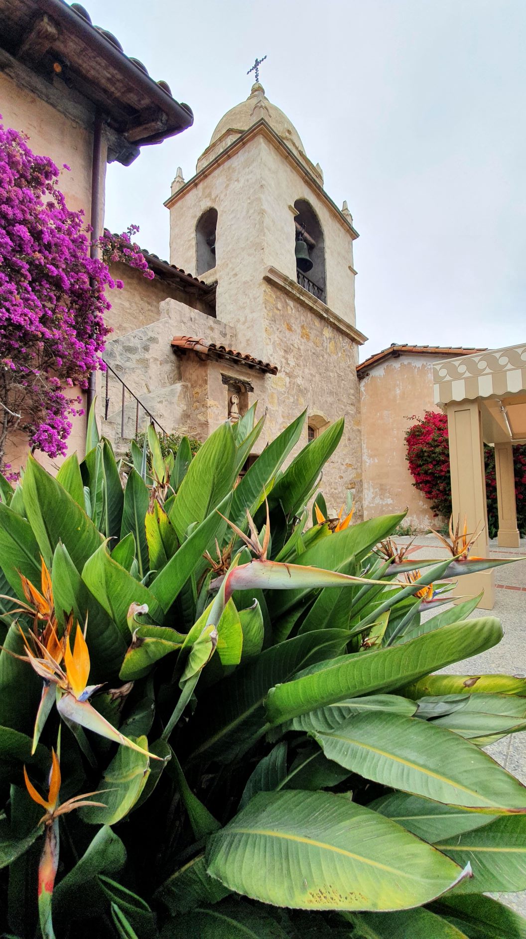 Clockwise from upper left: Neighborly buck stops by to look in the window and say goodbye; Carmel Mission with my favorite bird-of-paradise flowers; “boot” of charred wood, Sand City beach; Flowers along Malpaso Creek trail; Jellyfish, Monterey Coast Guard pier; Historic Casa Soberanes garden path lined with old bottles; Cormorants and a sea lion in Monterey Bay;