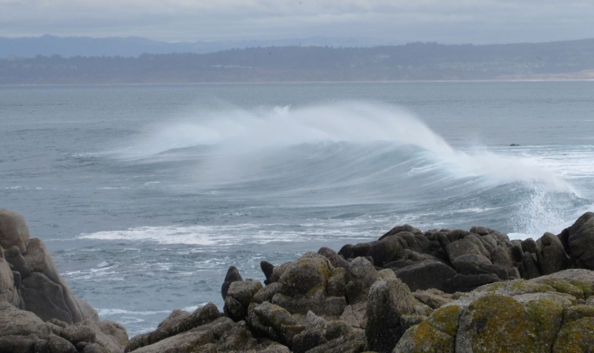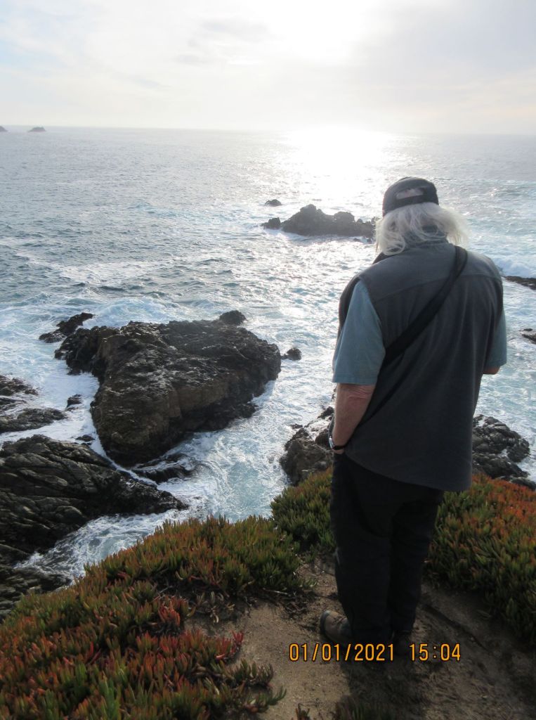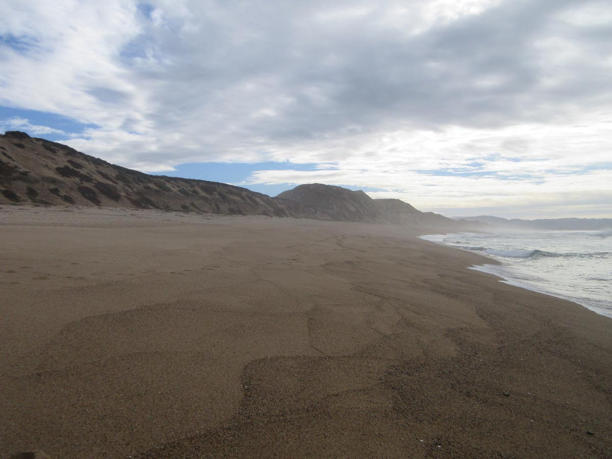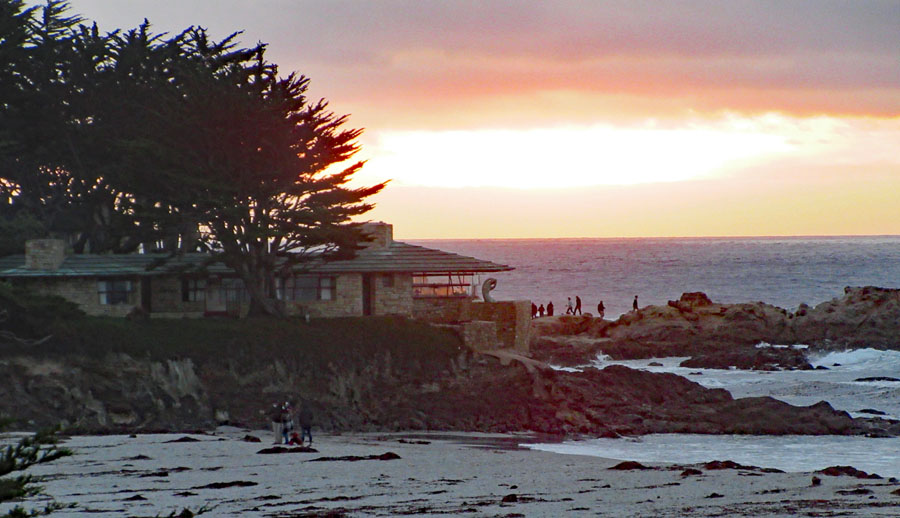 The three lowest tides of the month fell on consecutive days this week, and we took advantage to collect sea glass. Arriving at Sand City beach, we found a number of serious beach glass collectors at work. Six or seven people, each wearing wet suits and boots, sometimes a parka, sometimes elbow length rubber gloves, waded in the surf. For more than an hour, maybe even two, they ranged along the shore with a long-handled tool, scraping up beach gravel and glass, rummaging through the pieces, and putting some in a shoulder bag, while wet to mid-thigh and up to the elbows. We admired their hard work, and wondered what they did with their finds.