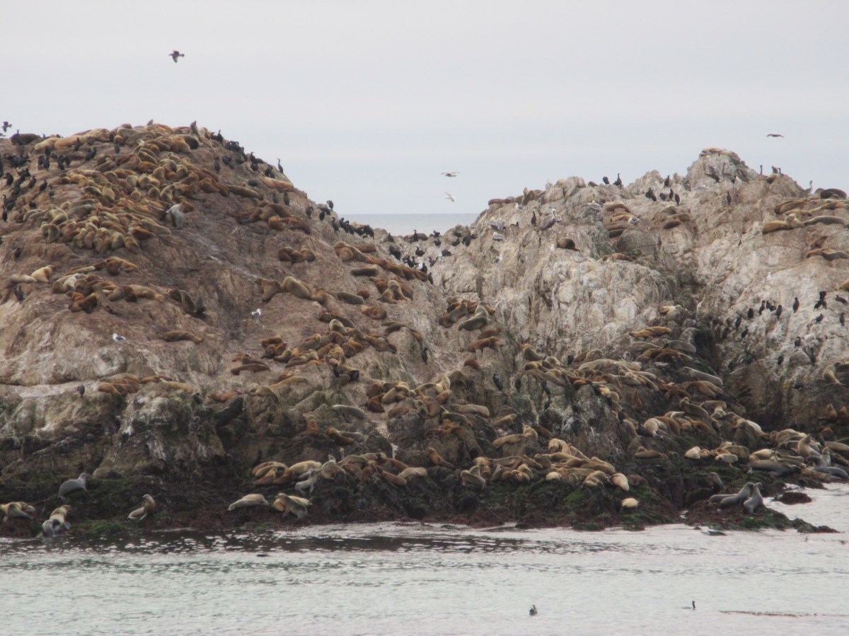 The day was overcast and the tide was low, with lots of shore birds wading along the beaches and on the rocks. Bird Rock is a favorite stop on the drive, though it isn’t covered with birds, but with seals and sea lions.