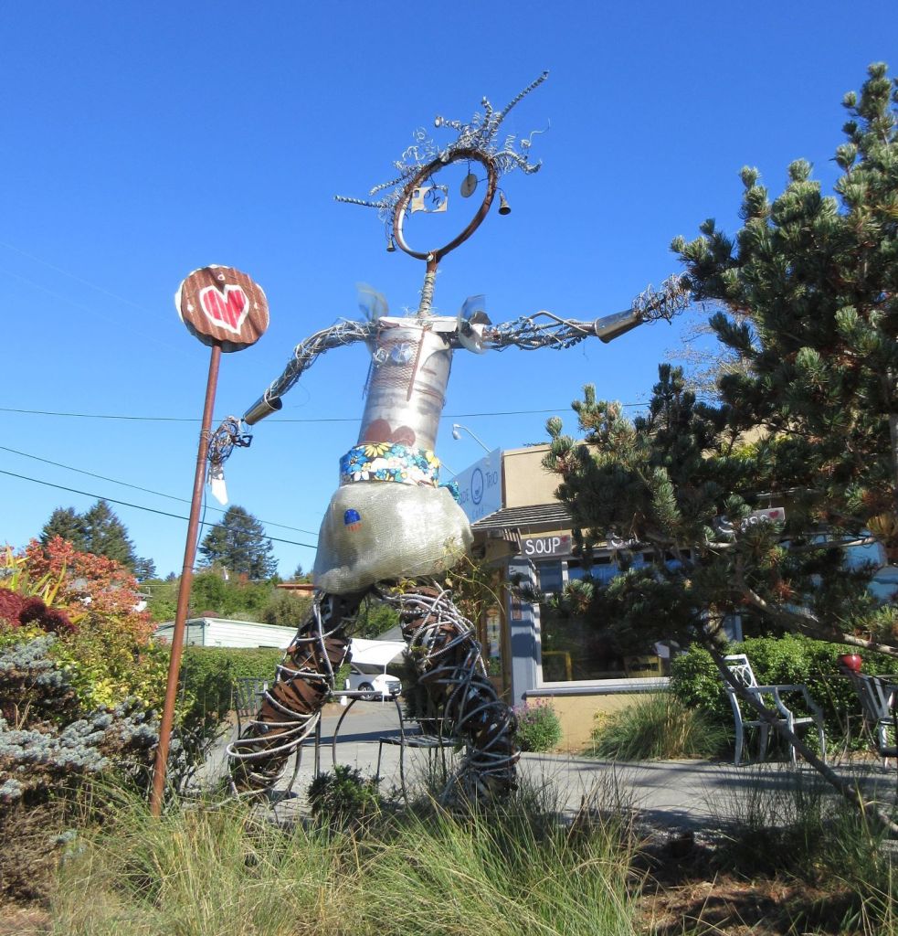 In front of a cafe in Bayside, this large metal lady dances in the breeze.