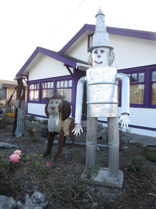 On Quaker St. in Eureka, there is a man who makes sculpture out of broken machinery, tools, and old car parts. He came out to chat with us and told us that his grandchildren have made the newer pieces.
