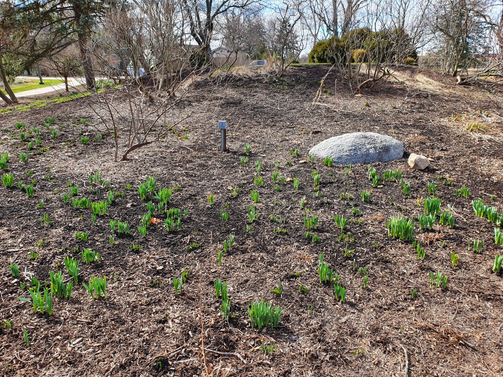 The best known feature of the town is Lilacia Park, donated to the city by Col. William Plum, a local resident. The city was given his home, land, and the garden of lilacs that he and his wife had been cultivating for a number of years. The Plum’s began their garden with two lilac bushes they brought from France in 1907. The park was established in 1927, and today it includes over 200 varieties of lilacs. I had no idea there were that many variants! Though the plants are not in bloom yet, daffodils and tulips are coming up, and within a couple of weeks the park should begin its showiest time of the year. There won’t be a Lilac Festival this year, but the flowers will bloom no matter what. I intend to walk by regularly to keep track of them, and to smell the lilacs.