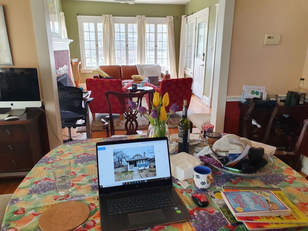 Adding to my disgruntlement is the fact that we are sheltering in place in our old stomping grounds, the Chicago suburbs. We have a lovely house here through Airbnb, but remember–when Jonathan and I left this area almost six years ago, we had NO plans to return. I would have preferred to be isolated in a new potential home town on the east or west coasts, but here we are, where the doctors are familiar and we can navigate the health care system relatively easily.