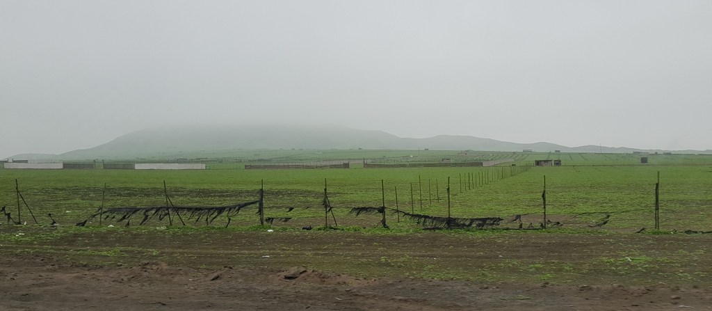 Winter on the coast of Peru, gray skies, mist, cold (no central heating).