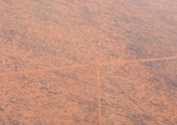 Some of the landscape recalls aboriginal painting, circles, dots, lines of contrasting colors. How can there be no roads? Finally, I begin to see roads, threads of orange-brown.