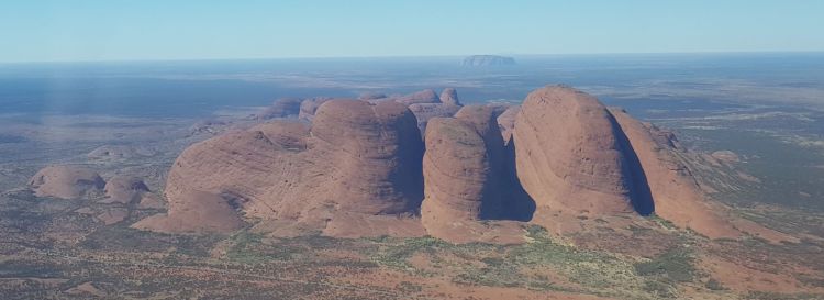 After an hour and a half in the air, we approached Uluru, imposing even from above. The aerial circuit was spectacular, and was followed by a swing around Kata Tjuta, a knobby rock formation that is close by, aeronautically speaking, though it would take at least an extra day to visit by car from Uluru.