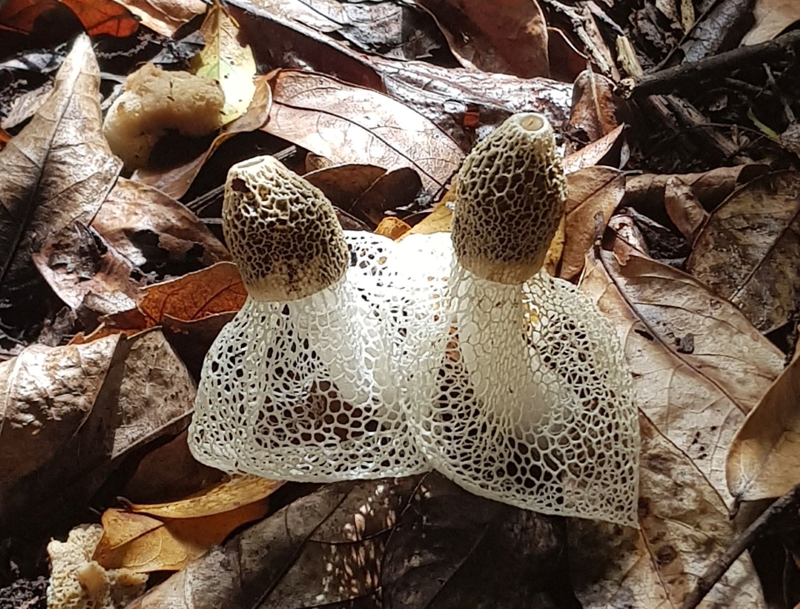 Outdoor plantings are complemented by the indoor collection of bromeliads, orchids, and butterflies. We also saw the weirdest mushroom I’ve ever seen. It grows a little lace dress for itself. Very strange indeed. They probably came out during the rain.