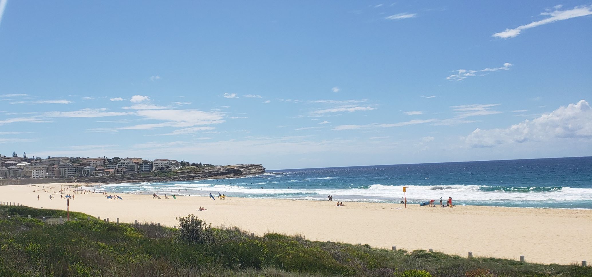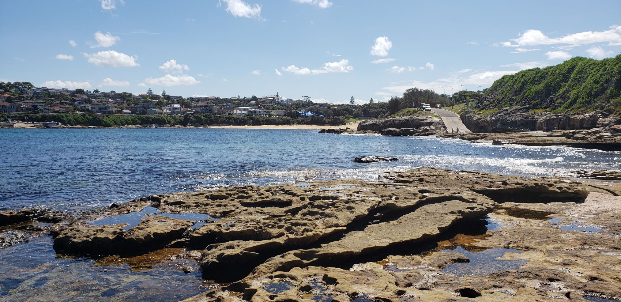 Our first day in Sydney was focused on settling into our new Airbnb and shopping, but the next effort was to explore the nearest beach. Maroubra Beach is just one km from our house, about 5 minutes by car. It has everything, sandy beach, interesting rock formations, good beachcombing, surfers, even a biology class combing the rocks. This is a lively zone.
