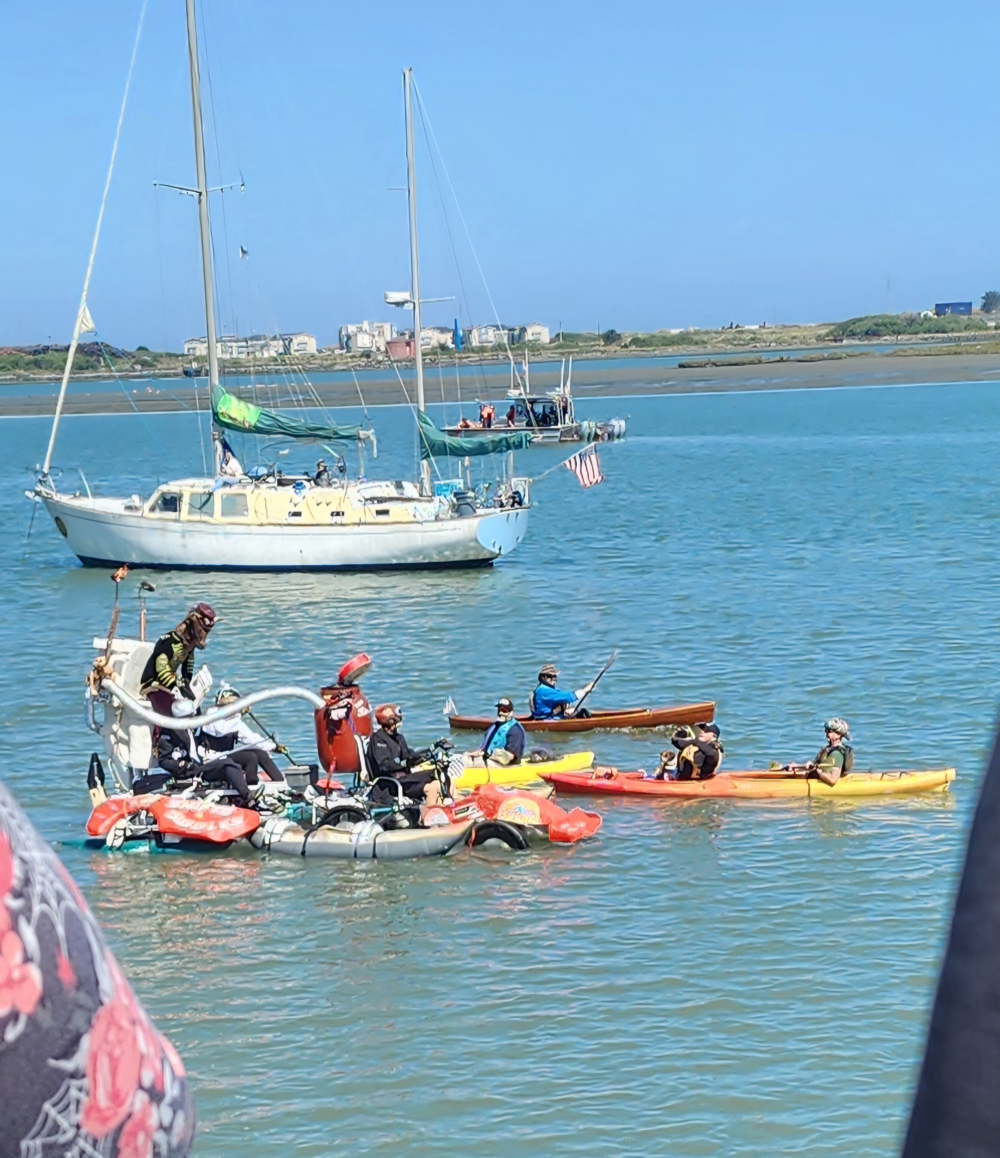 When (if) they emerge from Humboldt Bay, the race continues through Eureka to Crab Park, south of town, where there is an overnight encampment. I believe entrants get extra points for camping overnight.