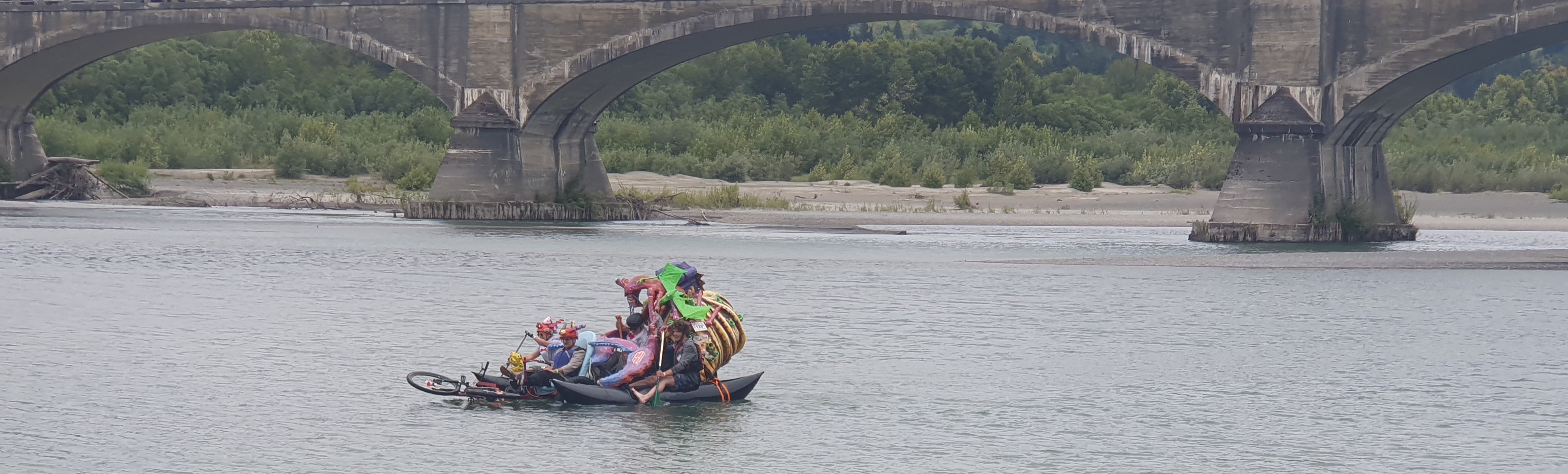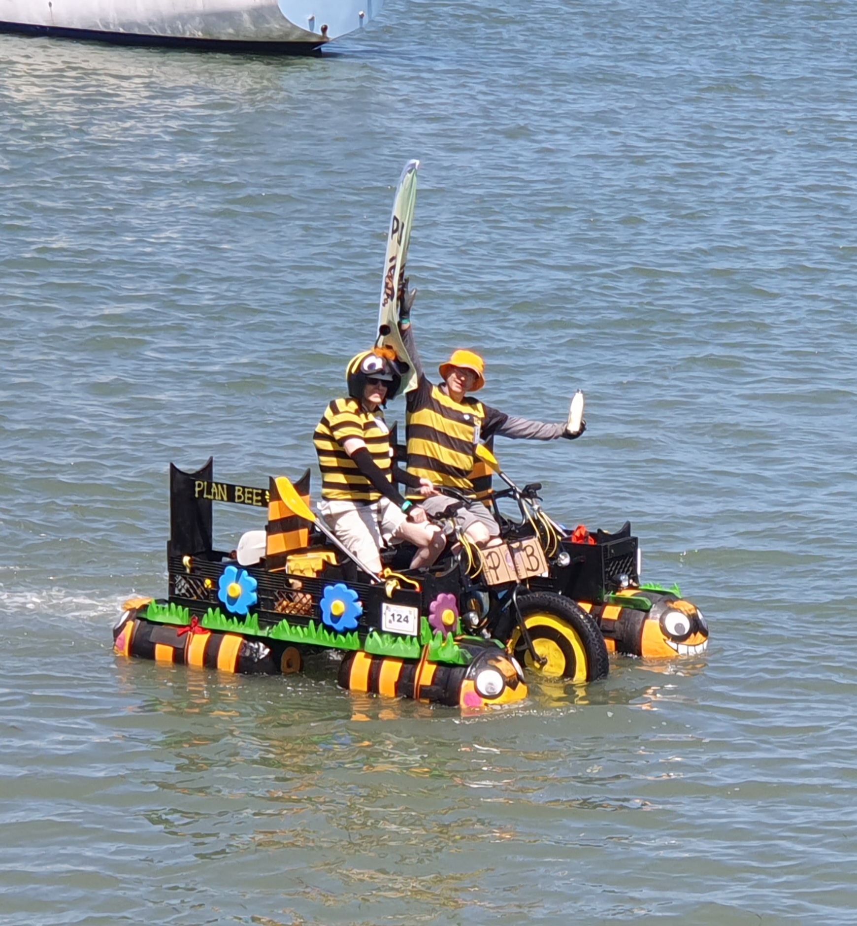 Still, most everyone makes it to the finish line, though I understand that the first finisher was a sculpture that doesn’t brave the water, but gets trucked in. That’s a different category in the competition. The finale extends over about five hours of honking, the band playing, cheering, and general merrymaking.