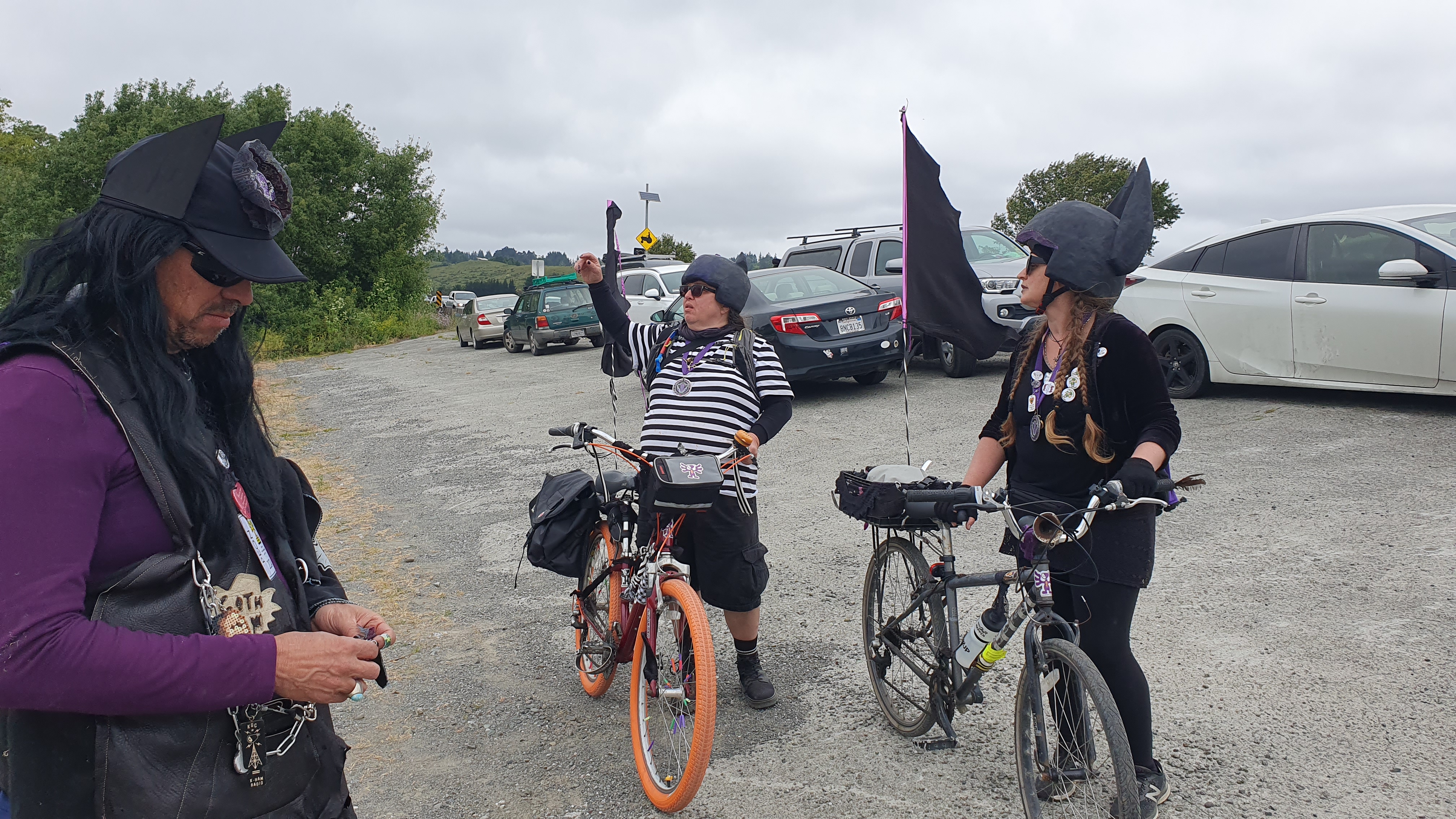 This year there were more than fifty entrants, from individuals to crews of six. Every entry recruits a pit crew, and followers (peons), costumed to match. Teams spend hours before the event making pins and badges, called “bribes” to give away. This encourages viewers to cheer for anyone who has given them a token, and makes spectators feel like part of the event. Last time, I got bribes from the three-humped camel, this year we are committed to Goth-Ham, going for that Hamtastic Glory.