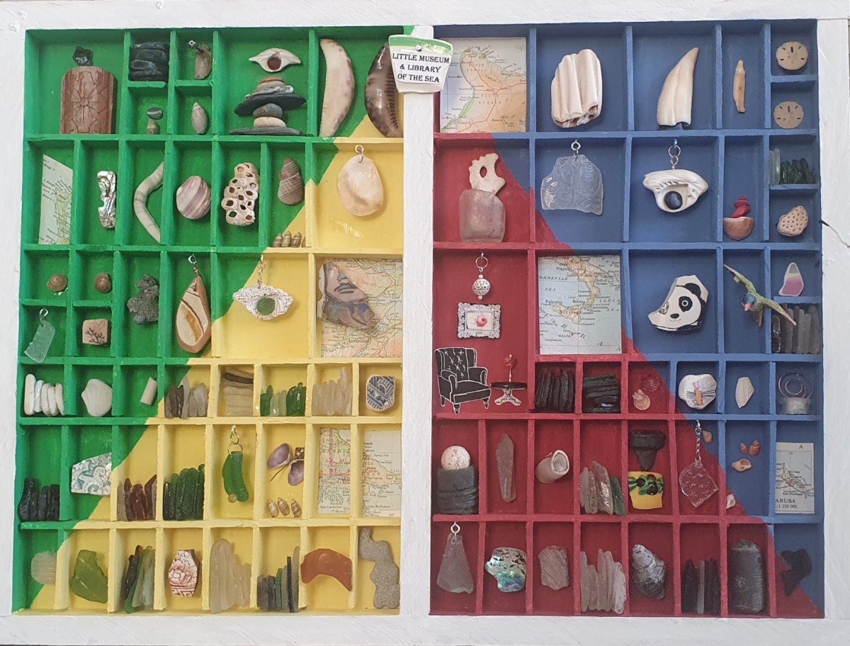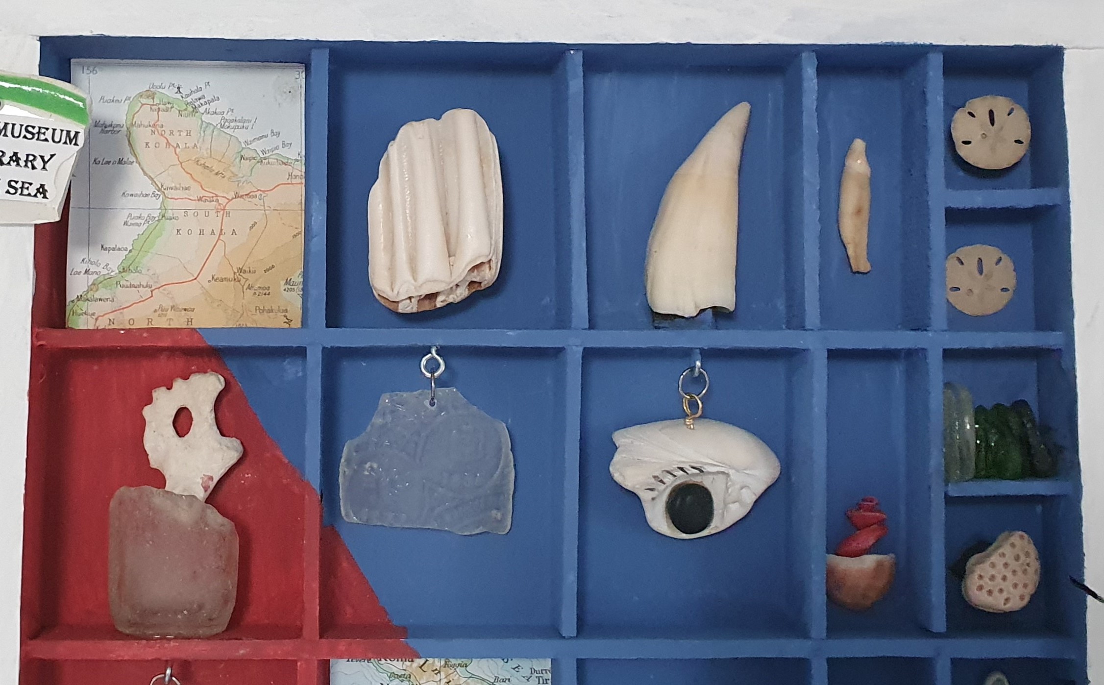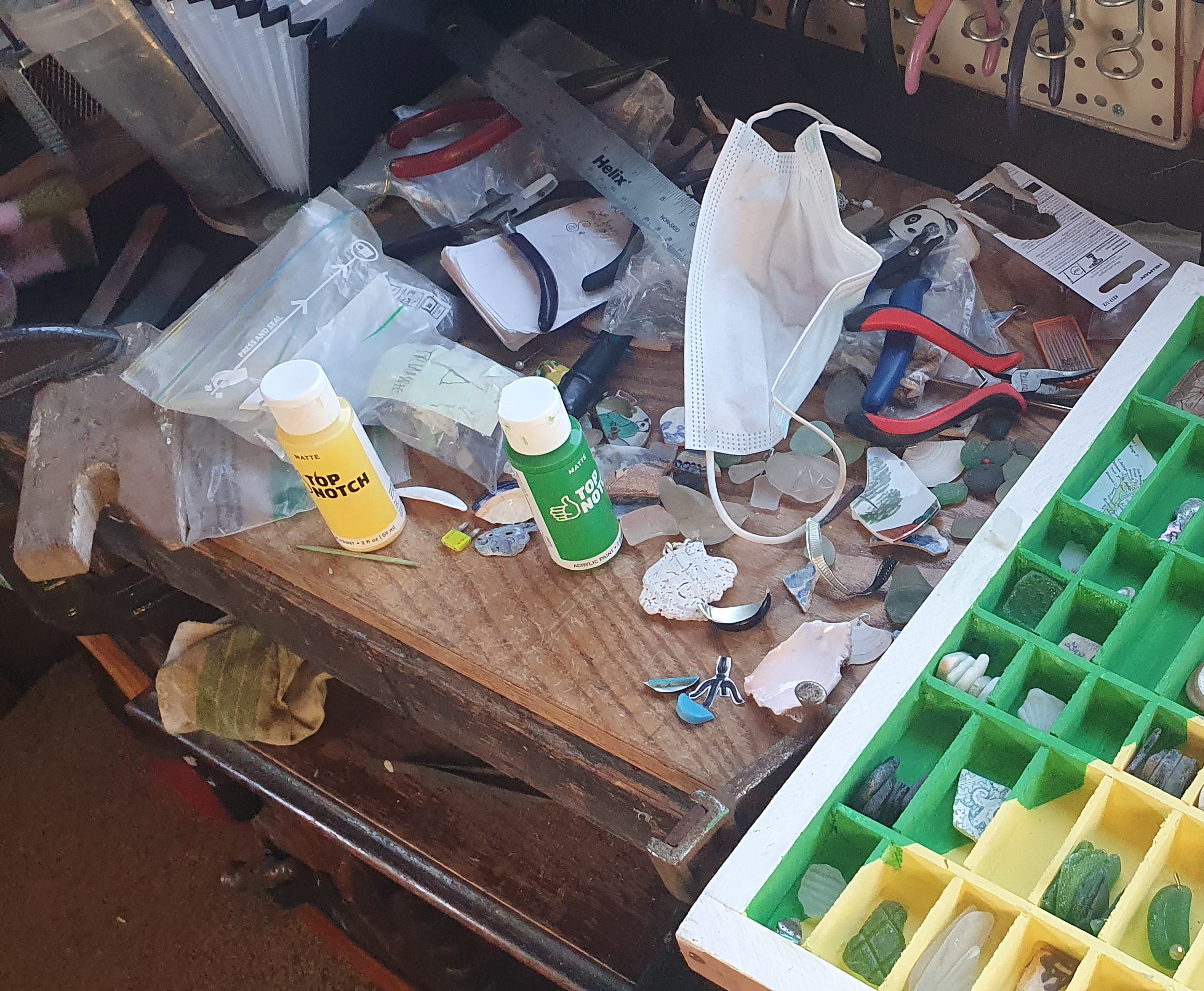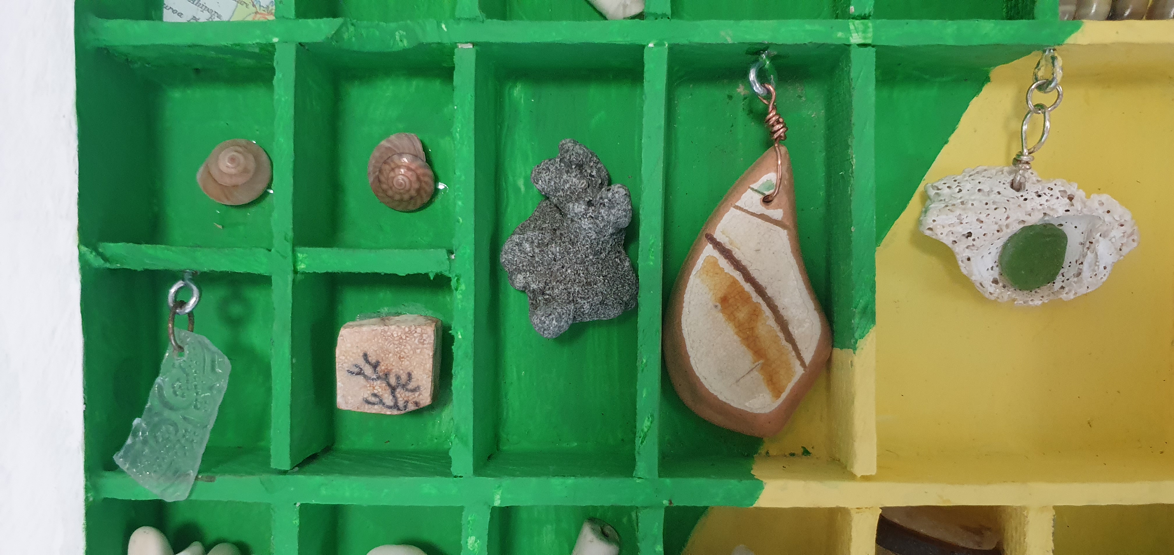 There was beachcombing on Curacao, rocks, coral, flotsam and jetsam, also beach glass. The bits of beach on either side of our resort proved to be as good as anywhere else to browse. The coast around Willemstad seems to have been used for trash disposal at some time in the past, and as the shore erodes into the sea, fragments of broken bottles and crockery are tumbled into gems. There was not a lot of recognizably old glass, only a few pieces were fluorescent, for example, and we found none of the thick bottle bottoms that sometimes indicate century-old glass. It was a lot of fun to pick up pieces, and I have enough material to make necklaces and bracelets for another year. The few pink pieces we found were a surprise.