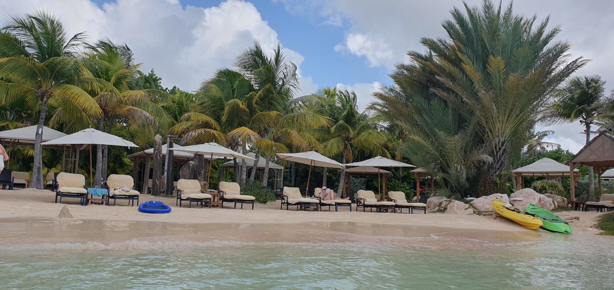 We were planning to visit the opposite end of the island, but found out the roads don’t go that far, as it’s all privately owned. We visited Jan Thiel beach to see if there was any beachcombing, but found little in the way of beach, or beach to walk along. There was a big stretch of beach chairs, and lots of people enjoying the water. We had a brief look around and decided our resort was more interesting. On the way back, we stopped several places to see if there were options for beachcombing. We stopped on this bluff to look down at a very promising beach, only to find it was an island. Without a kayak, it was not accessible.