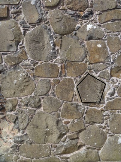 There is a stile that includes a fragment of trim from around an arched doorway. It’s the lowest stone in the group.
