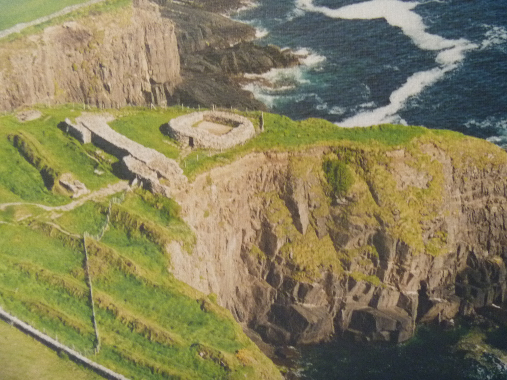 Jonathan is standing up on the wall of the Cathergall stone fort