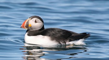 We had total weather karma. The day dawned sunny for the first time since we arrived in Ireland and stayed sunny and warm ALL DAY. It took us just over two hours to drive from our house in Dingle to Port Magee, mostly along the Ring of Kerry drive, so you could say we were multi-tasking in the tourism department. Our boat left at 11:45 am and we were asked to arrive at the dock by 11:30 am. A friendly young man named Brendan, dressed in a dirty tshirt and jeans strolled out and ticked our names off a list on his phone. He led us to the boat where there were 12 outward facing seats hung with life jackets. Dressed, we took off, heading straight out to sea for 45 min. The islands, two triangular chunks of rock, stick up out of the sea and are easily visible from shore. Cliffs and hills line the coast on the way out to sea from Port Magee, then Puffin Island off to the south, then sea birds zoom alongside the boat or bob on the water. (What are they doing, just hanging out in the middle of the ocean?) We saw gannets and then puffins, the world’s cutest birds.