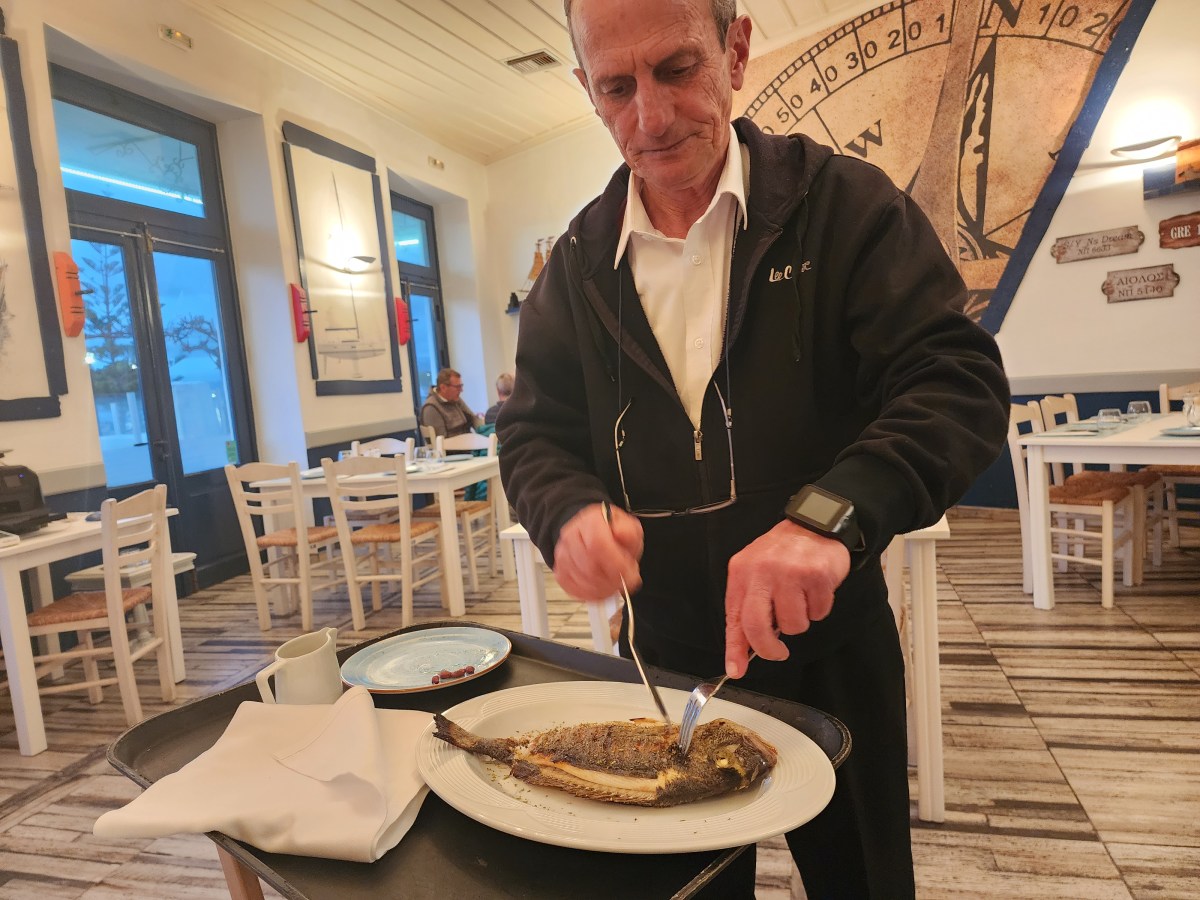 We had dinner along the shore, and ordered a whole fish that the waiter boned at our table.