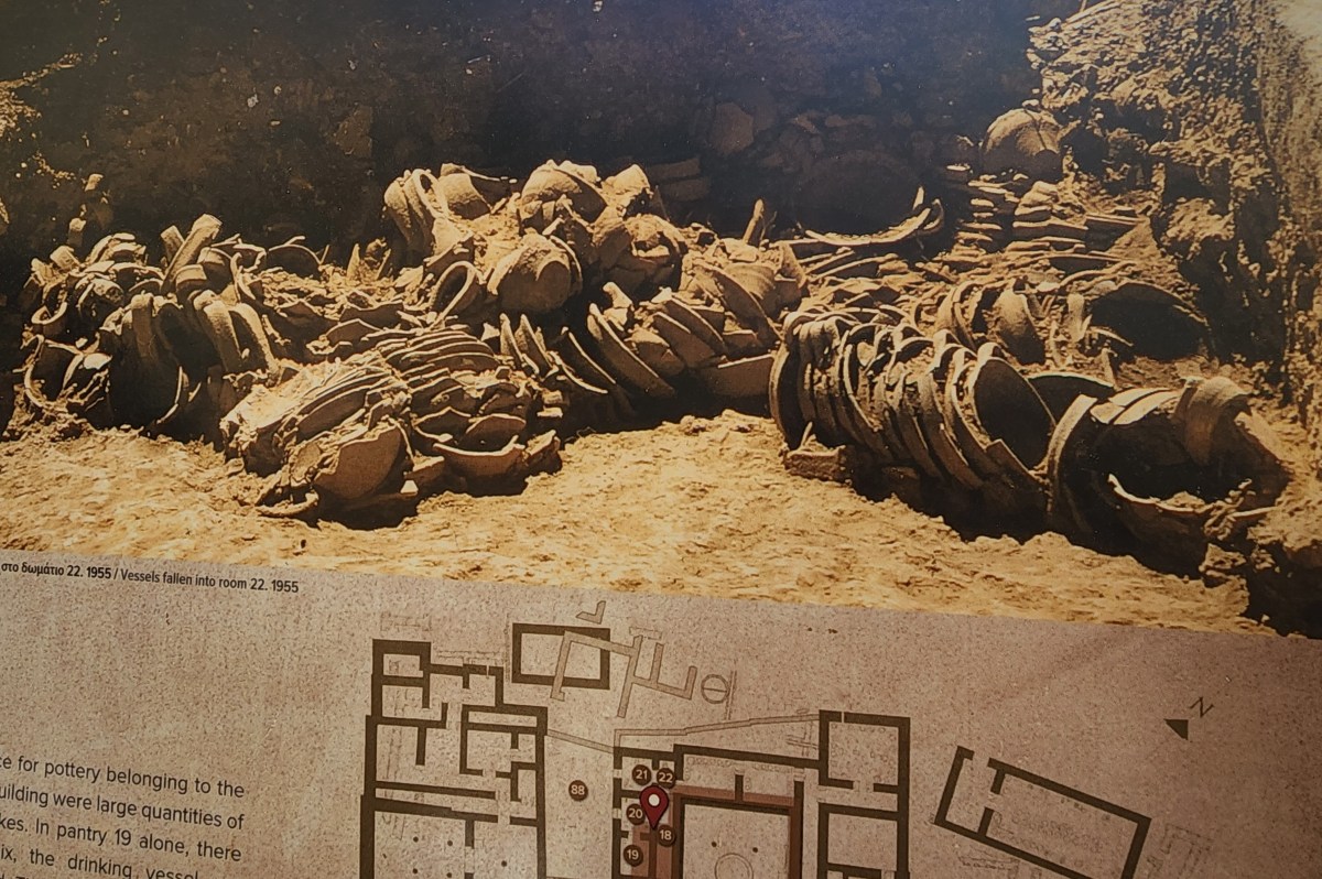 There were stores of oil, grain, and perhaps wine, and lots of staff to keep the place going. During the excavations, stacks of dishes were uncovered, and a roomful of broken cups, possibly the result of an earthquake.