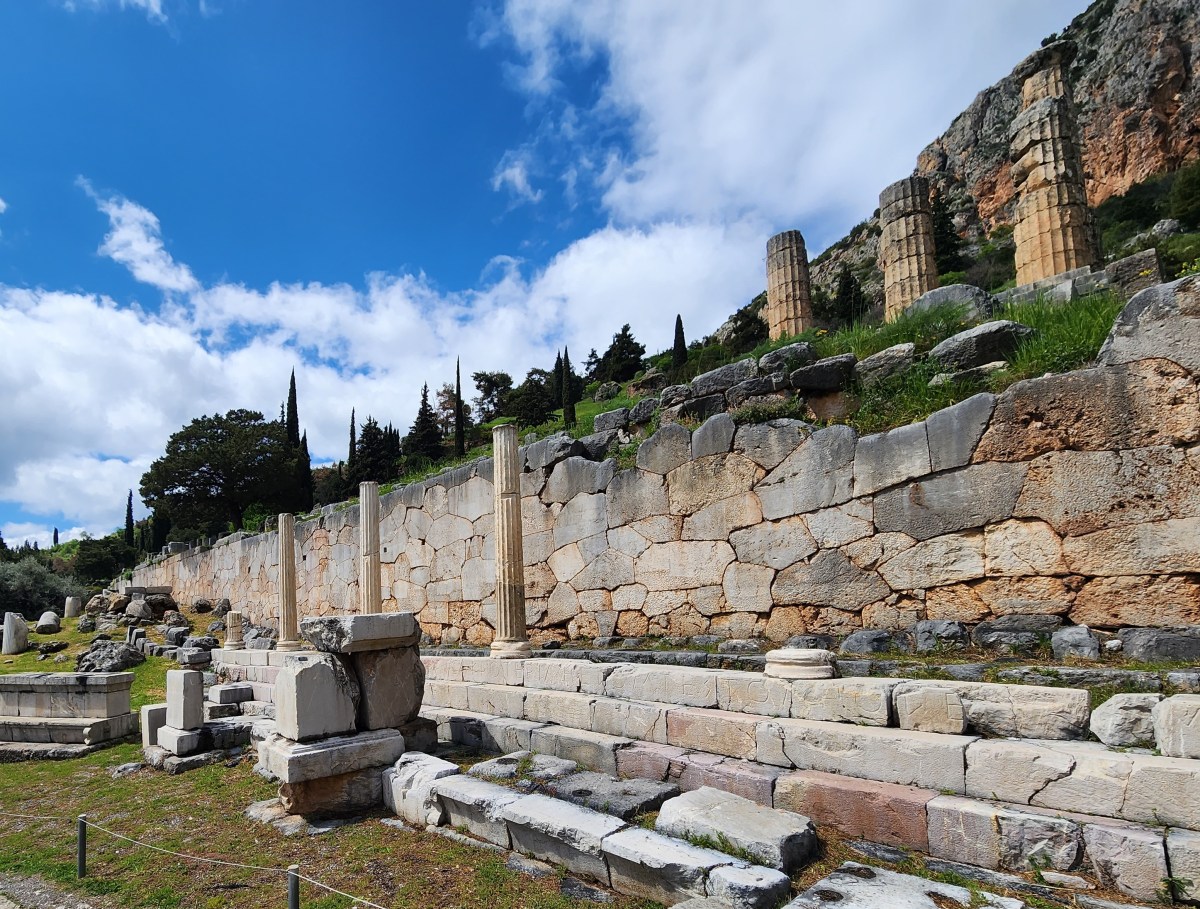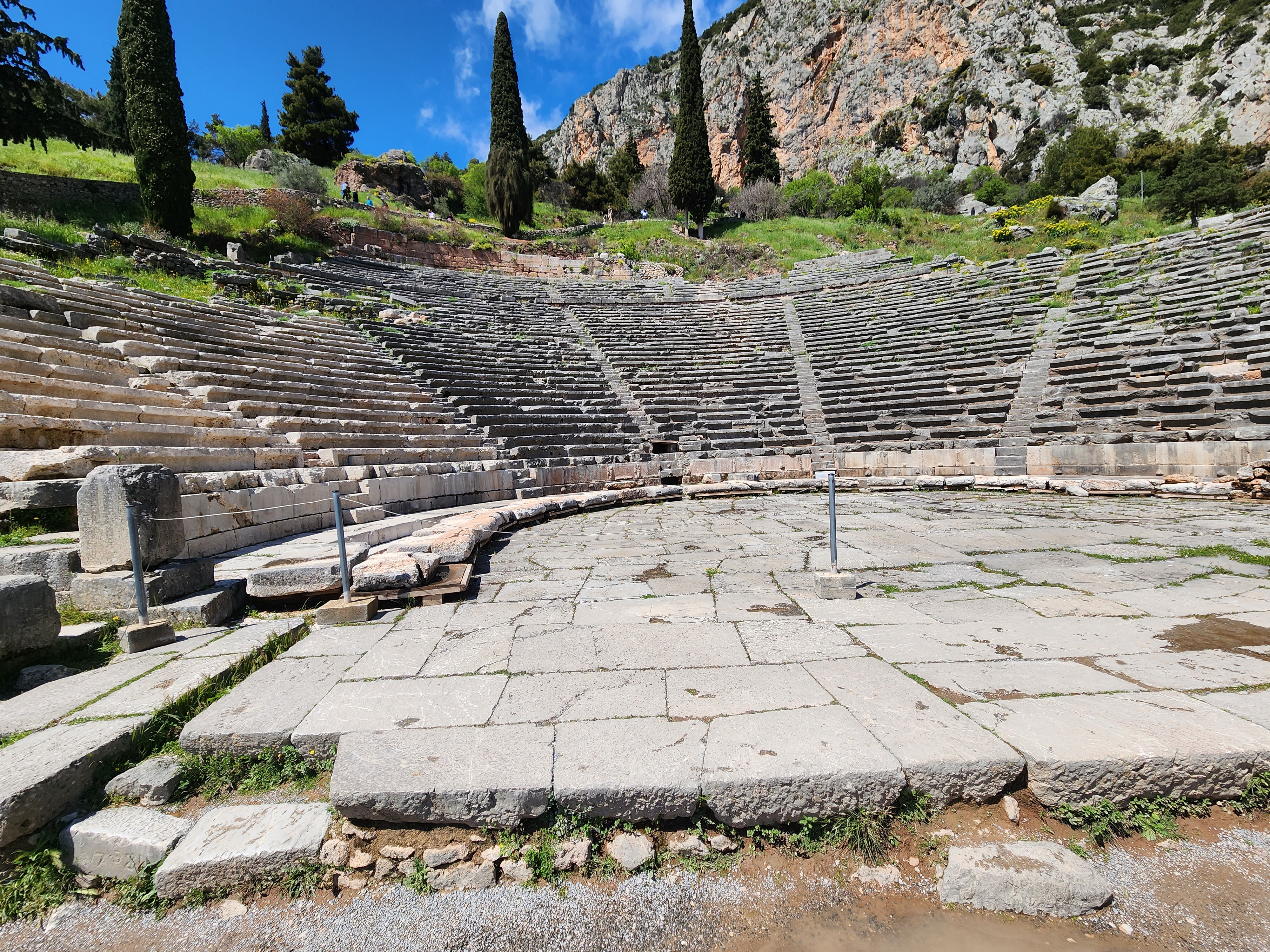 Despite its location on a rocky hillside, Delphi had all the features of a Greek city. In addition to its agora and theater it had a stadium, a bouleterion (council room), asklepion (for healing), lots of treasuries, and a remarkable number of inscriptions by those who visited.