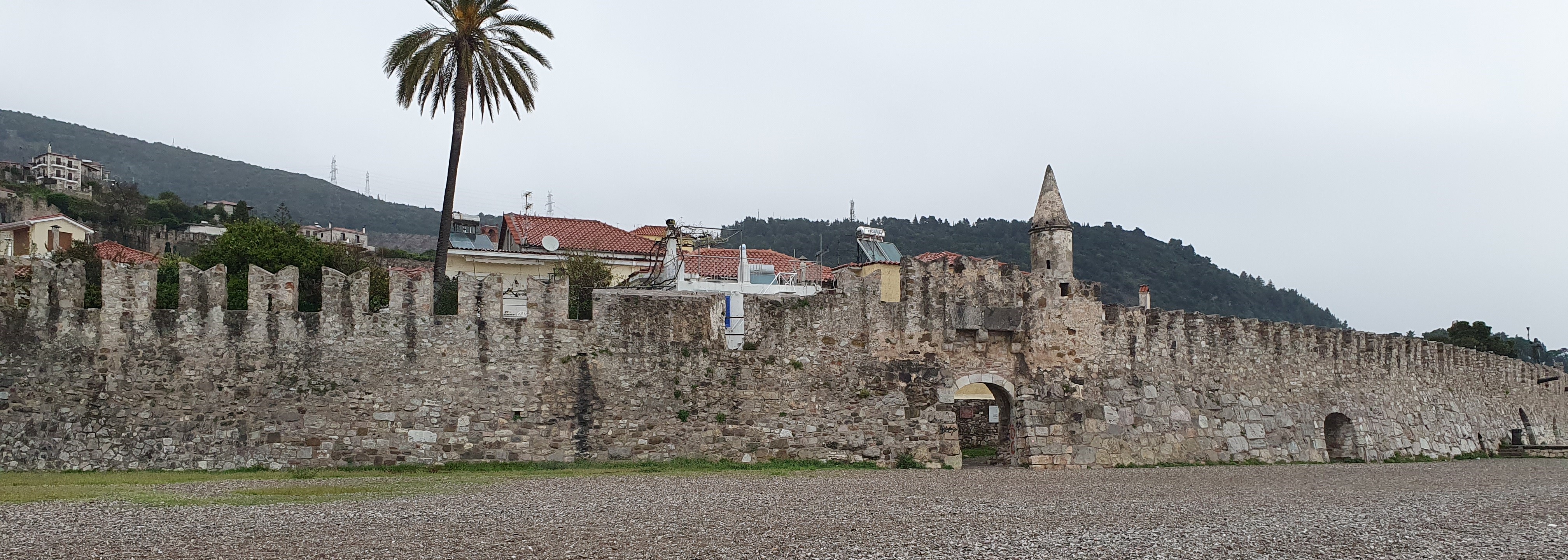 Exhausted by watching the battle, we retreated to the car and headed for our next stop, Nafpaktos. Like Pylos, Nafpaktos had a different name in the past. It was Lepanto, known for the Battle of Lepanto (1571). Where the battle off Pylos (Navarino) in 1827 was the last fought between sailing ships, the Battle of Lepanto was the last major battle fought between rowing ships that were based on the earlier Roman galleys. After the Greek Revolution, Nafpaktos reverted to its Greek name.