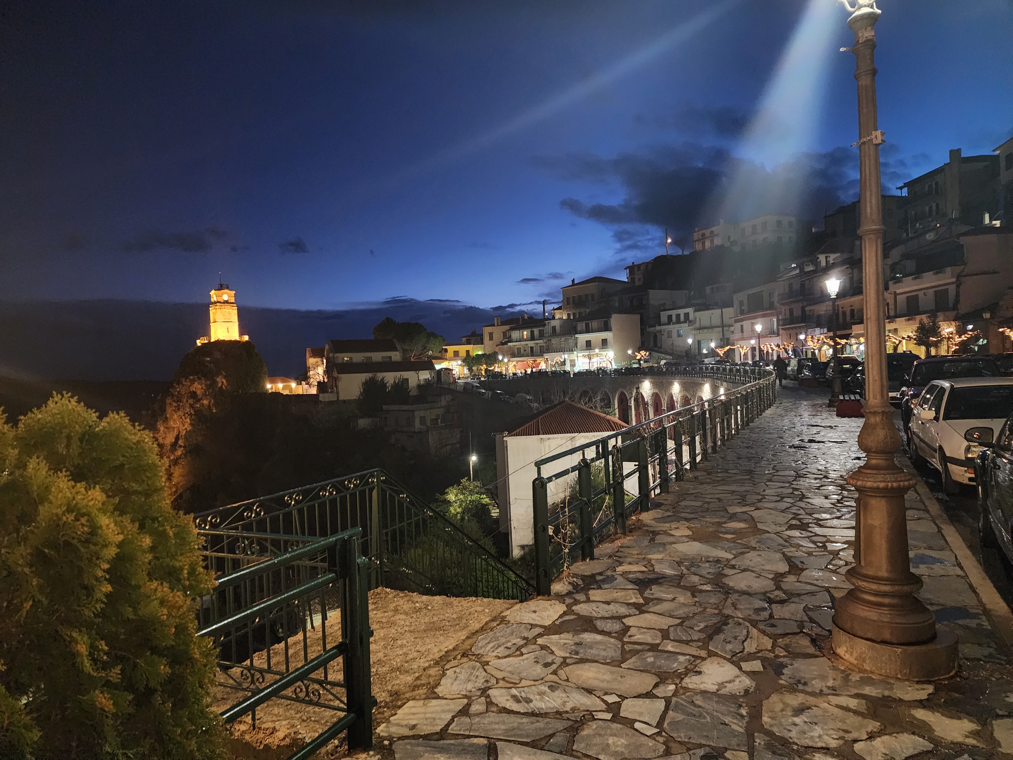 There was time for a stroll through town before sunset. Arachova is a pleasant small town. Most visitors to Delphi are on day trips from Athens and don’t stay overnight in the area. The town was not thronged with visitors in the evening, though that could change in the summer. We enjoyed our stroll to To Tsoukani, where the proprietor sat down with us to go over the menu, to make sure we got what we wanted.