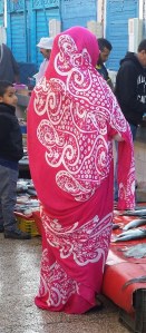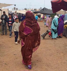 An important difference in the Human Development Index may be most visible in the number of Moroccan women who go about veiled. I personally see this as a barrier to education and work. In southern Morocco, where we are now, many women wrap themselves in a 3 meter long swath of fabric, a melfa, to go out. These can be very attractive, but the need to be veiled is something I view as a problem. Foreign women do not alter their mode of dress, and men can wear anything from jeans to a floor-length caftan. Note the men and boys in the background of these photos.