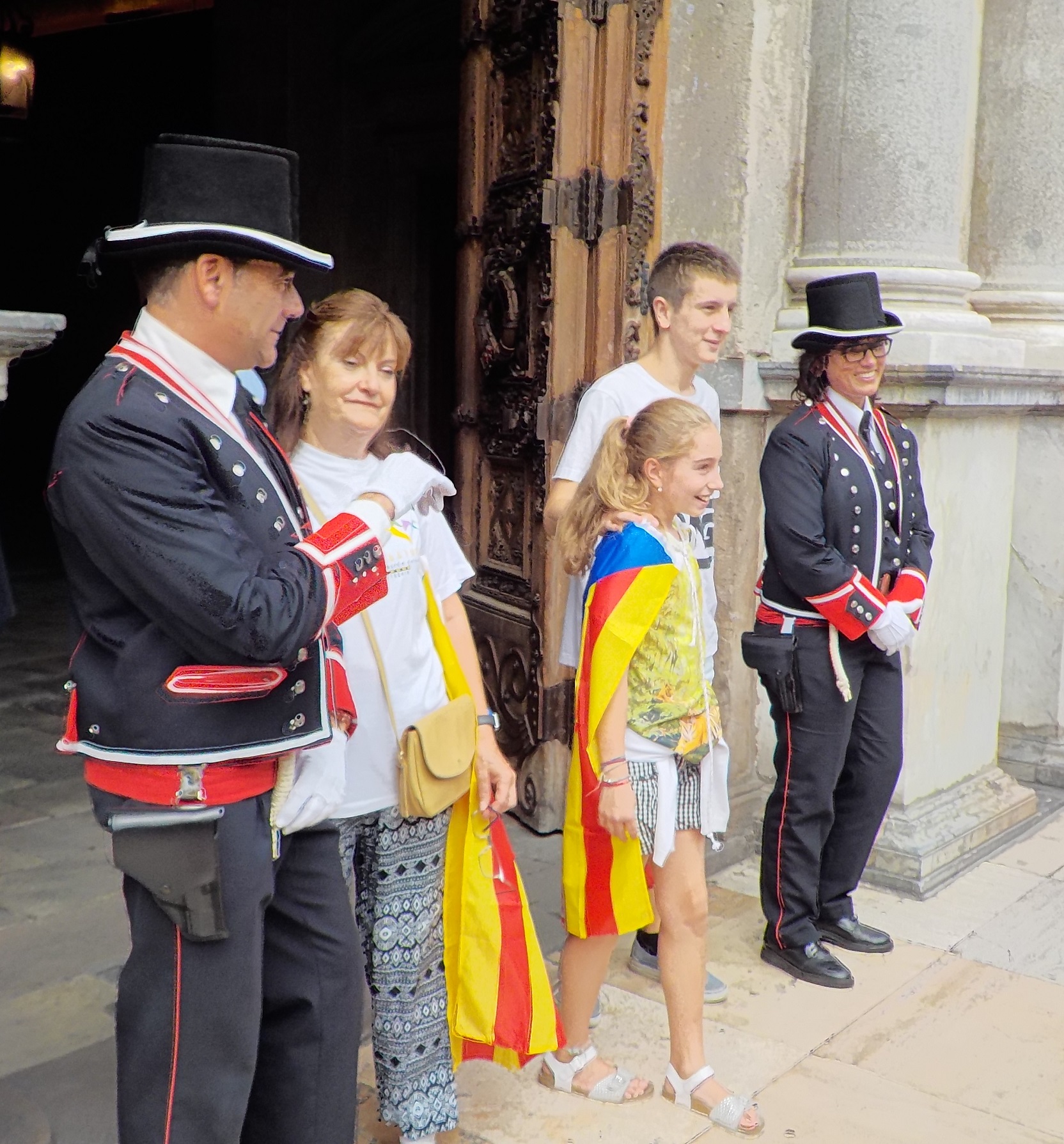 Catalan government buildings were open for visitors and many people took advantage to file through or take their photo with door guards in ceremonial dress.