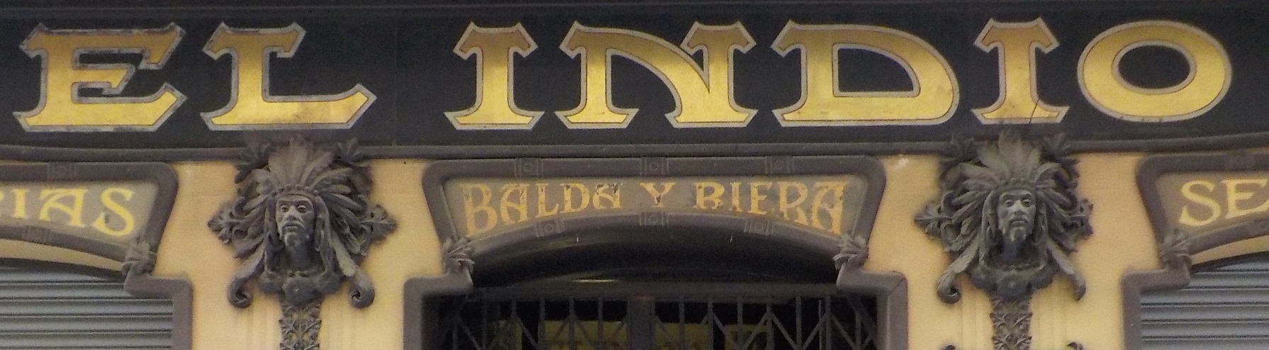 El Indio is not a politically correct name for a store, and the depictions of “Indians” on the facade are highly romanticized (note the beards and mustaches). The detail is attractive, and the politics of the time seem to have indicated that wool, silk, lingerie and accessories came from an exotic locale.