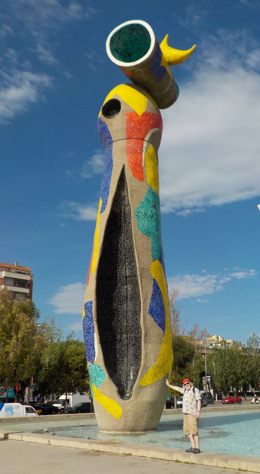The Miro museum doesn’t allow photography in the indoor areas. The collection, donated by Miro, his wife and close friends, is spectacular. Really unusual. Some of Miro’s earlier pieces have emotion jumping off the page (joy, anger, disgust) in a way that I don’t usually feel from looking at art in museums. It’s startling to look at a painting and get a sense of what the artist was feeling at the time. It was a wonderful visit. Before we got to the museum, we made a brief stop (between subway and bus) at the Joan Miro park, where one of his pieces is installed. It is wonderful, really tall and overlooks the entire park. Though there are apartment buildings around most of the park there are a couple of places where you can photograph the sculpture with the sky as your background. The title is Woman with Bird.