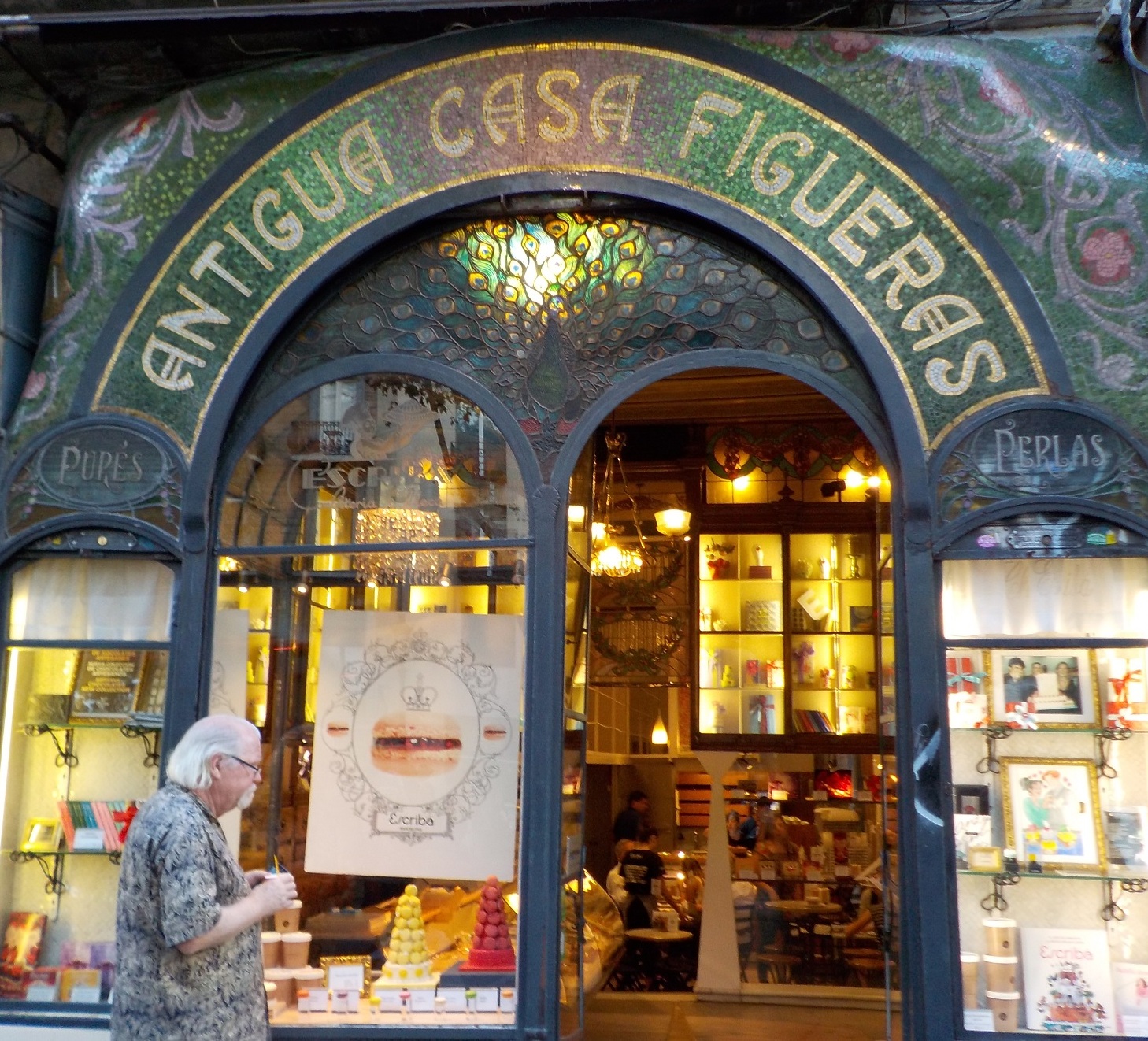 We followed this with a cup of chocolate at the Xocolateria. It was so thick I couldn’t finish my small cup–me! We also got the last two croissants available today, important because these were voted the best croissants in Spain in 2014. They were excellent and my eating most of the cream-filled one probably had something to do with not being able to drink all my chocolate…..