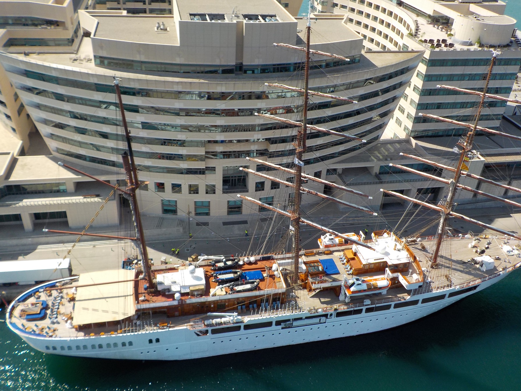 Notice that the W hotel overlooks the superyacht harbor. We saw a crew of about 15 cleaning one yacht. I wonder how many passengers there were? Our yacht would have had to park in the “non-super” marina.