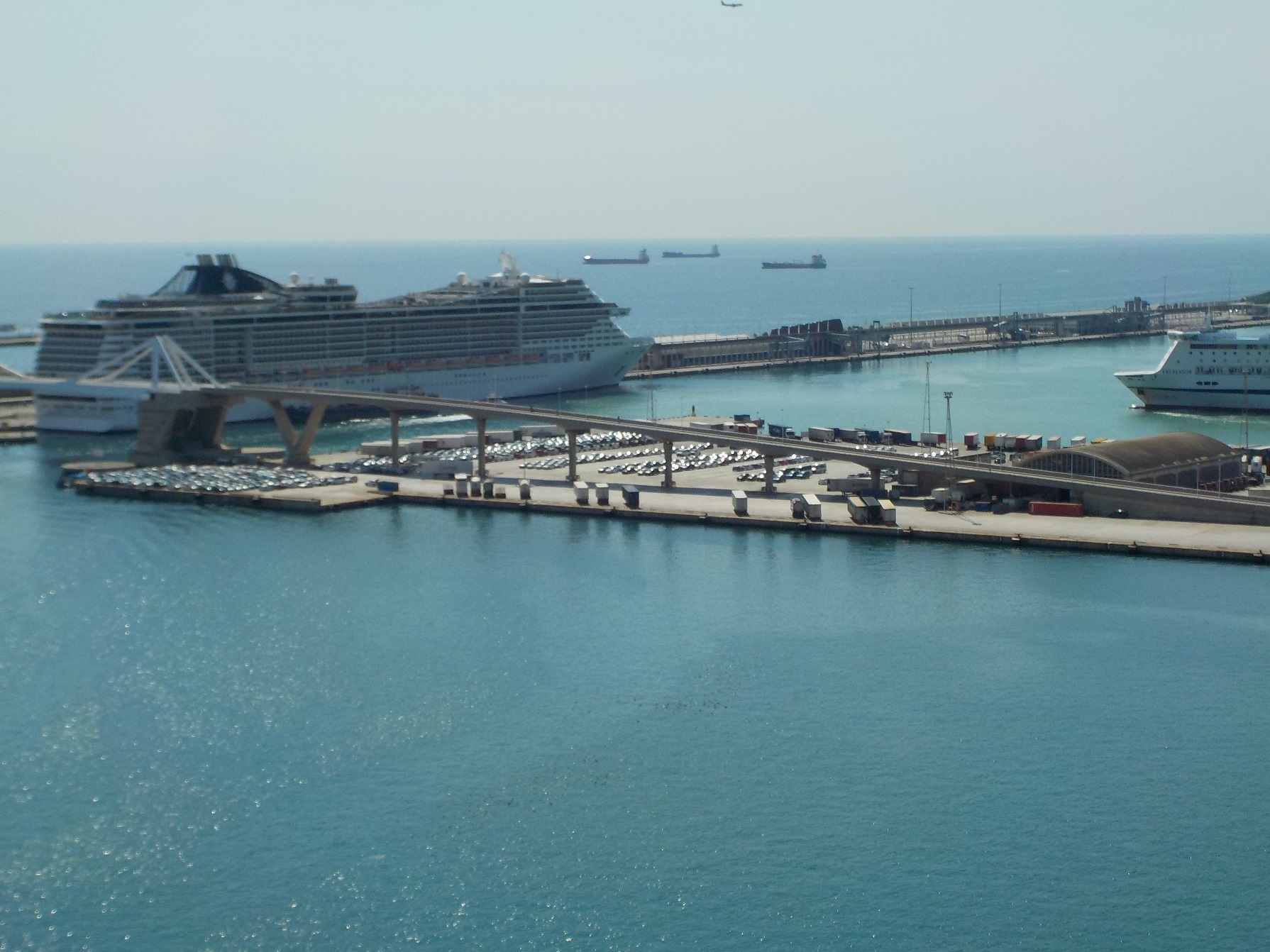 Cruise ships like this one stop in Barcelona frequently, as do long distance ferries like the one below that is departing for Italy (Genoa, Livorno or Rome).