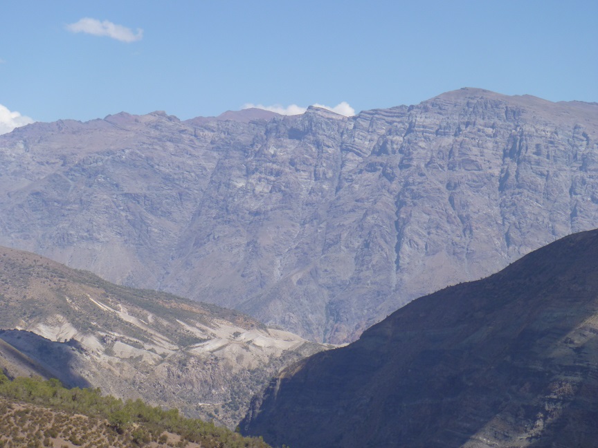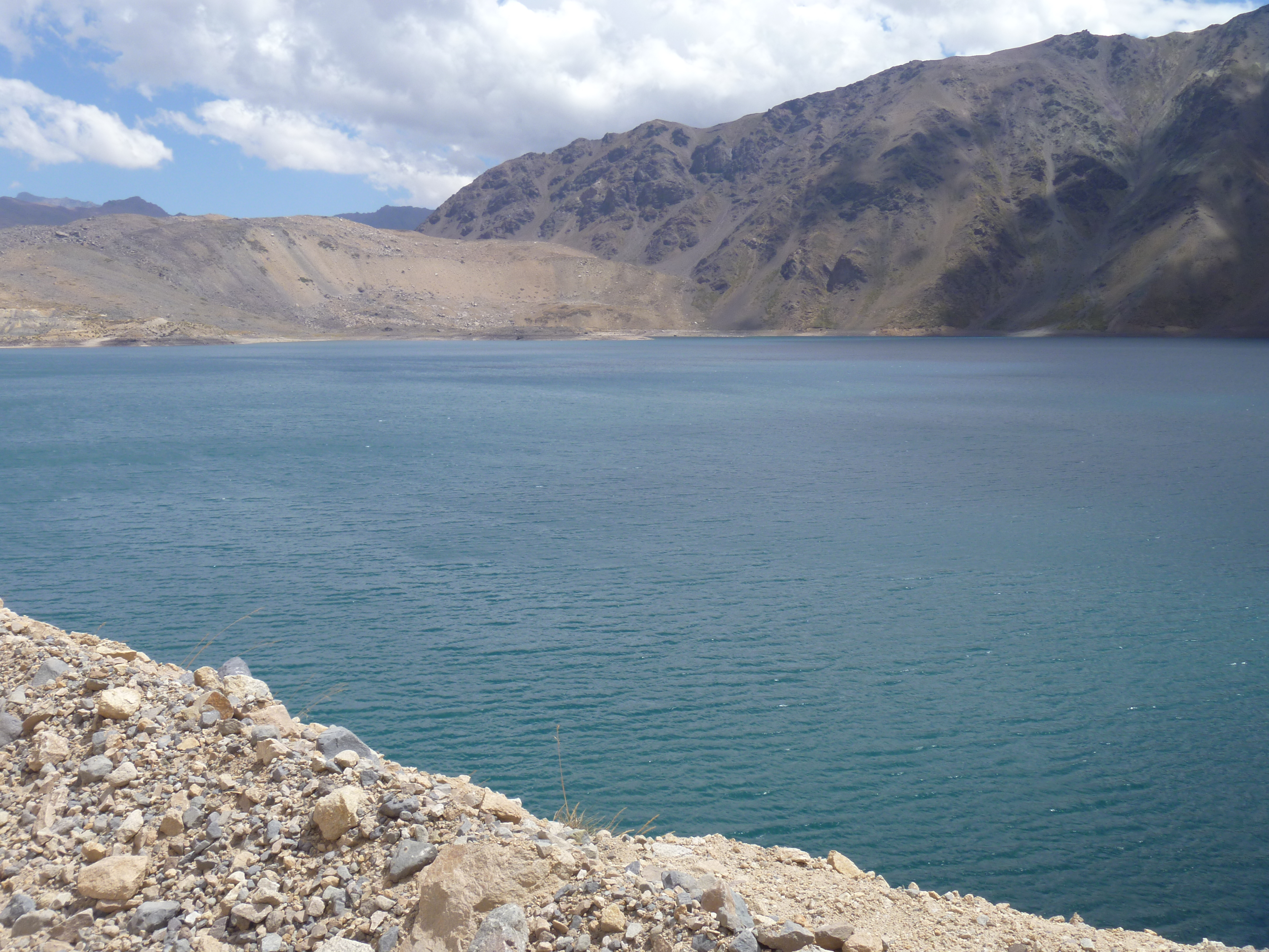 We made it to the reservoir. The name of the river, dam and reservoir, El Yeso, refer to the principal product of the area, gypsum, and explains the cavalcade of trucks going both ways that disrupts birders (and others). There is a cement plant at the junction of the unpaved and paved roads, too. It shows the conflict between environment and economy. The dam belongs to Aguas Andinas, Santiago’s water company, and a banner at Cascada de las Animas says “No more hydropower in the Alto Maipo,” alluding to plans to expand some aspect of the operation at the dam.