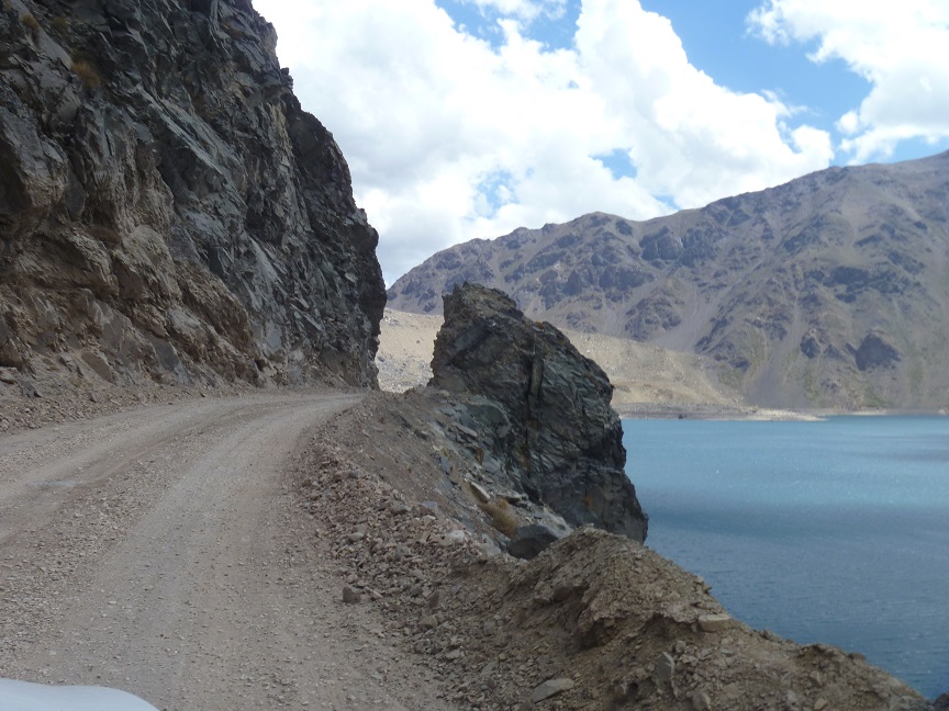 We got all the way up to the lake without seeing any condors. Well, we might have seen a condor but it ducked behind a mountainside. The road to the Embalse El Yeso was a bit hazardous: