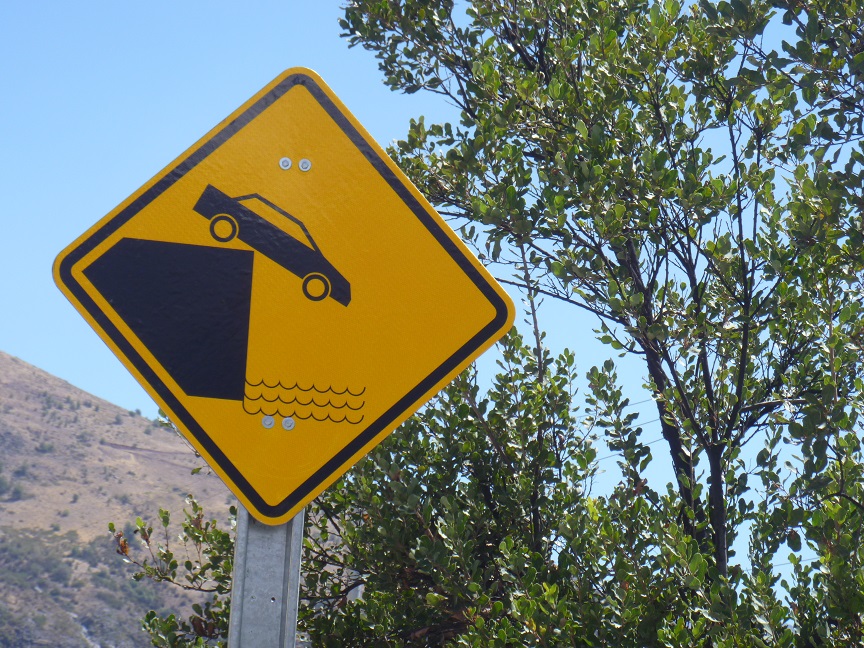 This is where we spotted two condors and pulled over to watch them soar. They circled back and forth for a while, giving us a chance to identify their rectangular shape with wings spread, a flash of white on the back and neck. A third condor was so high that it appeared only when I was looking at the others, a tiny flying spot in the background. We watched until they flew so high there was little to see. Condors in the wild, how about that?